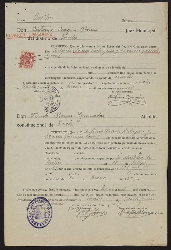 Expediente de pensiones militares de Juan Álvarez González