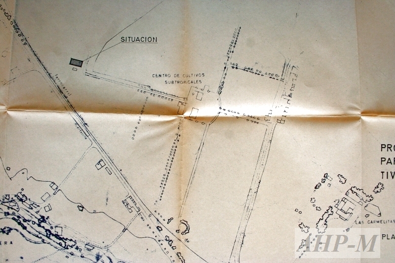 1977, diciembre, 27. Málaga. Archivo Histórico Provincial de Málaga. Centro de Investigación y Formación Agraria Sig.74793. Proyecto de almacenamiento para el centro de cultivos subtropicales en Málaga. Plano (detalle); autor: Enrique Grana Enciso. MFE.