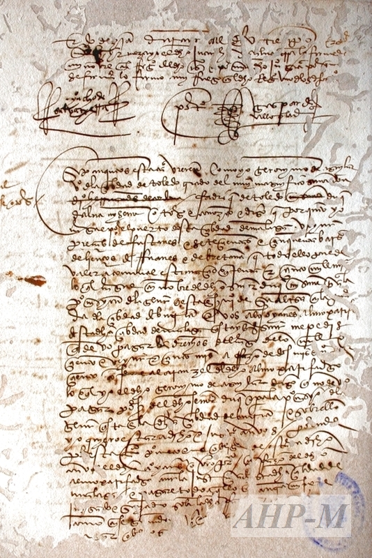 1511, julio. Málaga. Archivo Histórico Provincial de Málaga. Sección de Protocolos. Málaga. Leg. 4 fols. 269v-270. Jerónimo de Aguilar, vecino de Toledo, criado de don Fadrique de Toledo, duque de Alba, cargó en el puerto de Málaga 20 piezas de fustanes y 750 varas de lienzos ruanes y de Bretaña, por valor de 45.000 maravedíes; todo lo cargó en nombre del duque de Alba para la gente que está al servicio de los Reyes en la ciudad de Bujía; pero Alonso Yanes, almojarife de la ciudad de Málaga, le exige el pago de 1.125 maravedíes en virtud del arancel del almojarifazgo. Acta notarial. Observ.: la documentación notarial permite conocer muy diversos aspectos sobre: construcción, contratos con artesanos, manufacturas. Las actas notariales de los escribanos del número malagueños proporcionan datos sobre los presidios españoles en el Norte de África. ECB.
