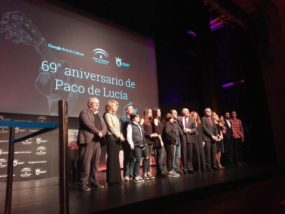 La Consejería de Cultura ha presentado hoy en el Teatro Municipal La Florida de Algeciras la exposición online ‘Memoria de Paco’ en Google Arts and Culture, con motivo del 69 aniversario del nacimiento del artista, Paco de Lucía, natural de la localidad. Durante acto, en el que han participado el subdelegado del Gobierno de la Junta en el Campo de Gibraltar, Ángel Gavino, el alcalde del Ayuntamiento de Algeciras, José Ignacio Landaluce, el Senior Policy Analyst de Google, Antonio Vargas, y el comisario de la exposición, Juan José Téllez, han actuado los guitarristas José María Banderas y Antonio Sánchez.