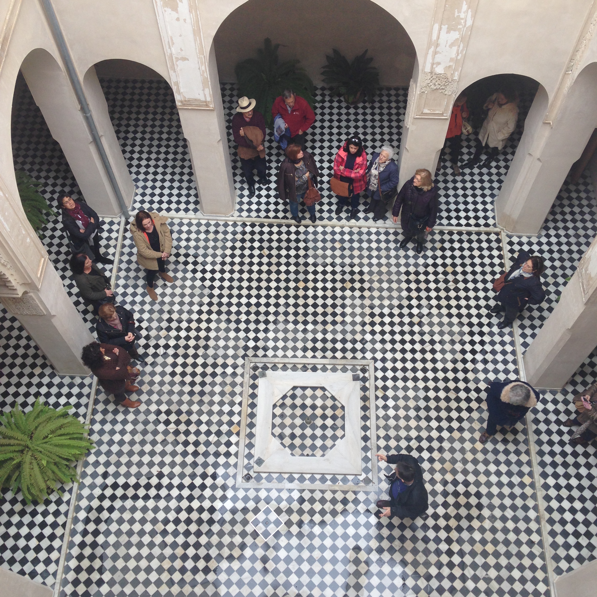 Un grupo visita uno de los patios del Palacio de Altamira.