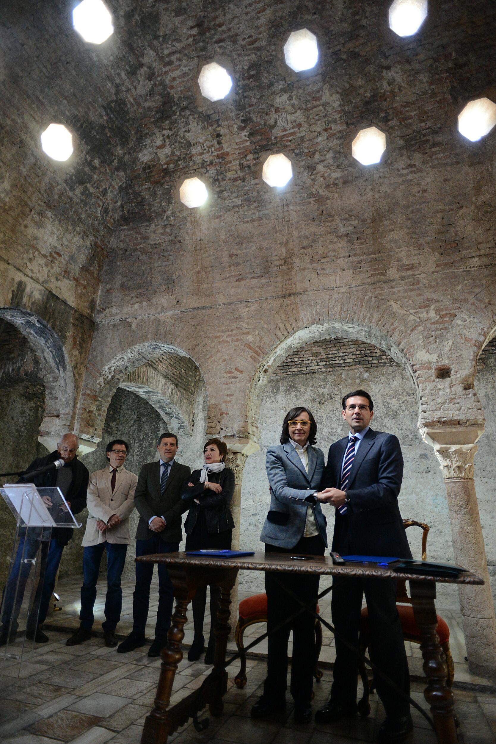 Rosa Aguilar y Francisco Cuenca, tras la firma del convenio del Albaicín.