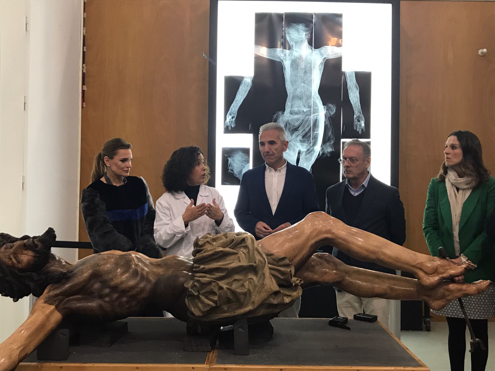 El consejero de Cultura visita el IAPH para conocer la restauración de la imagen del Cristo de la Agonía