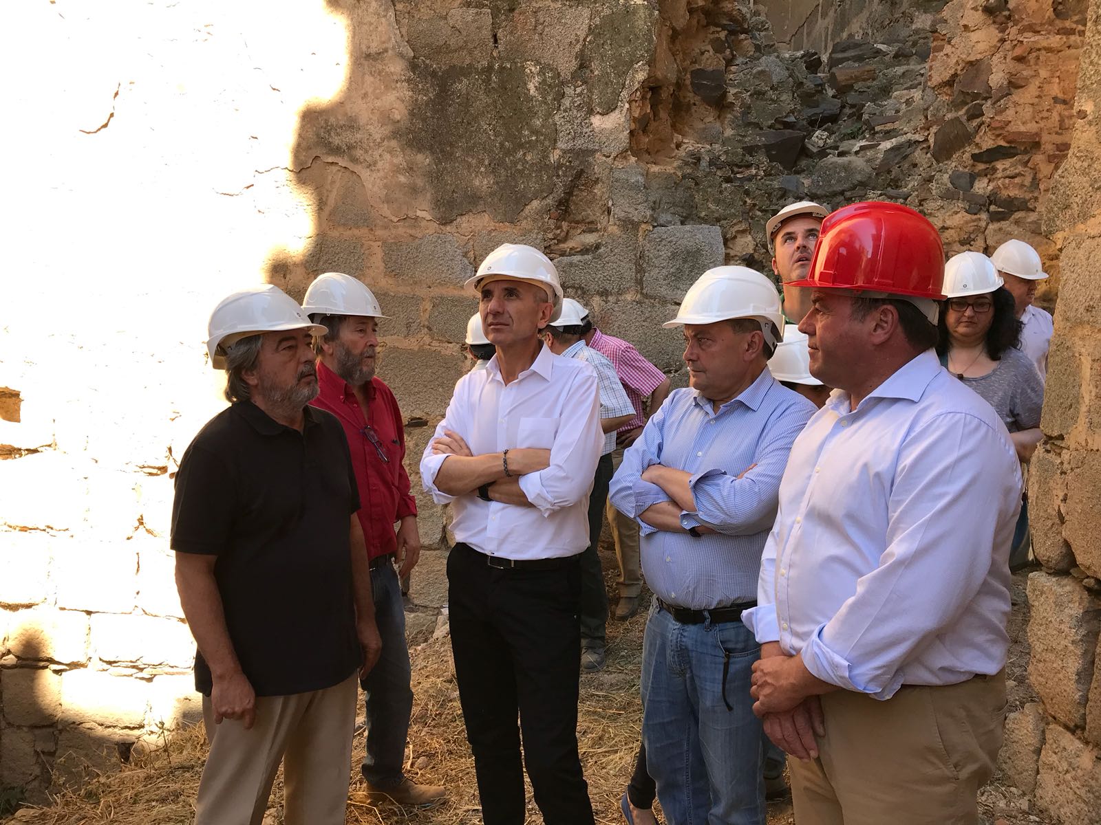 El consejero de Cultura, Miguel Ángel Vázquez, durante su visita a las obras del castillo de Belalcázar.