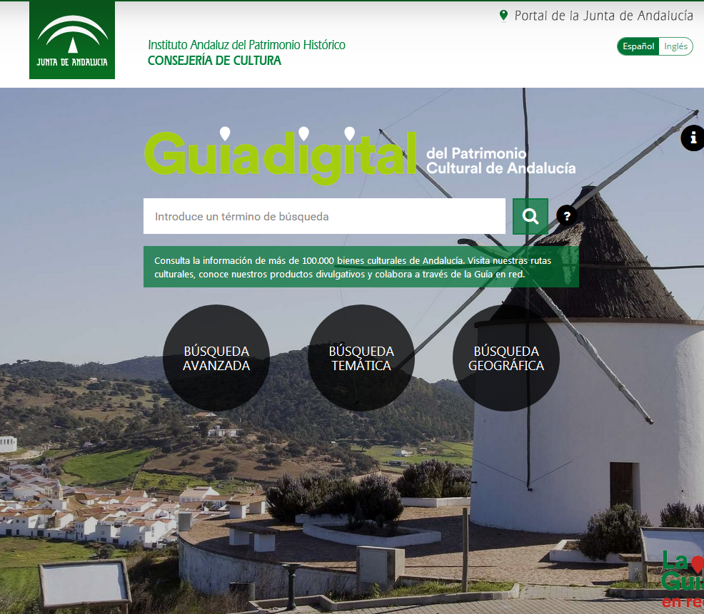 Entre las novedades de la Guía se encuentra también la posibilidad de búsqueda avanzada, temática y geográfica. La primera permite realizar, por ejemplo, búsquedas de bienes patrimoniales por periodo histórico, tipología funcional, estilo, etc., mientras que la búsqueda geográfica permite consultar la información a través de un localizador cartográfico o mapa interactivo que muestra la distribución territorial de una selección de bienes culturales andaluces.