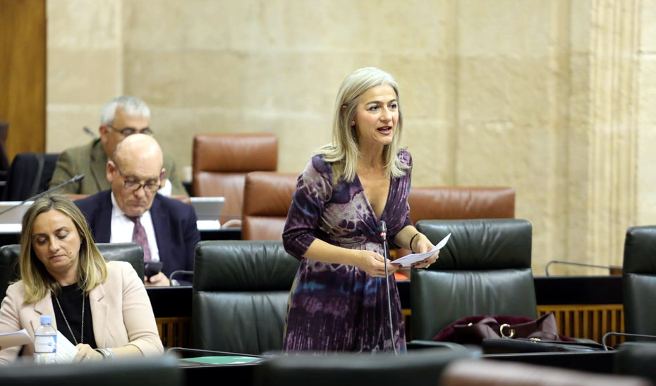 La consejera de Cultura y Patrimonio Histórico, Patricia del Pozo, durante su comparecencia en el Parlamento andaluz