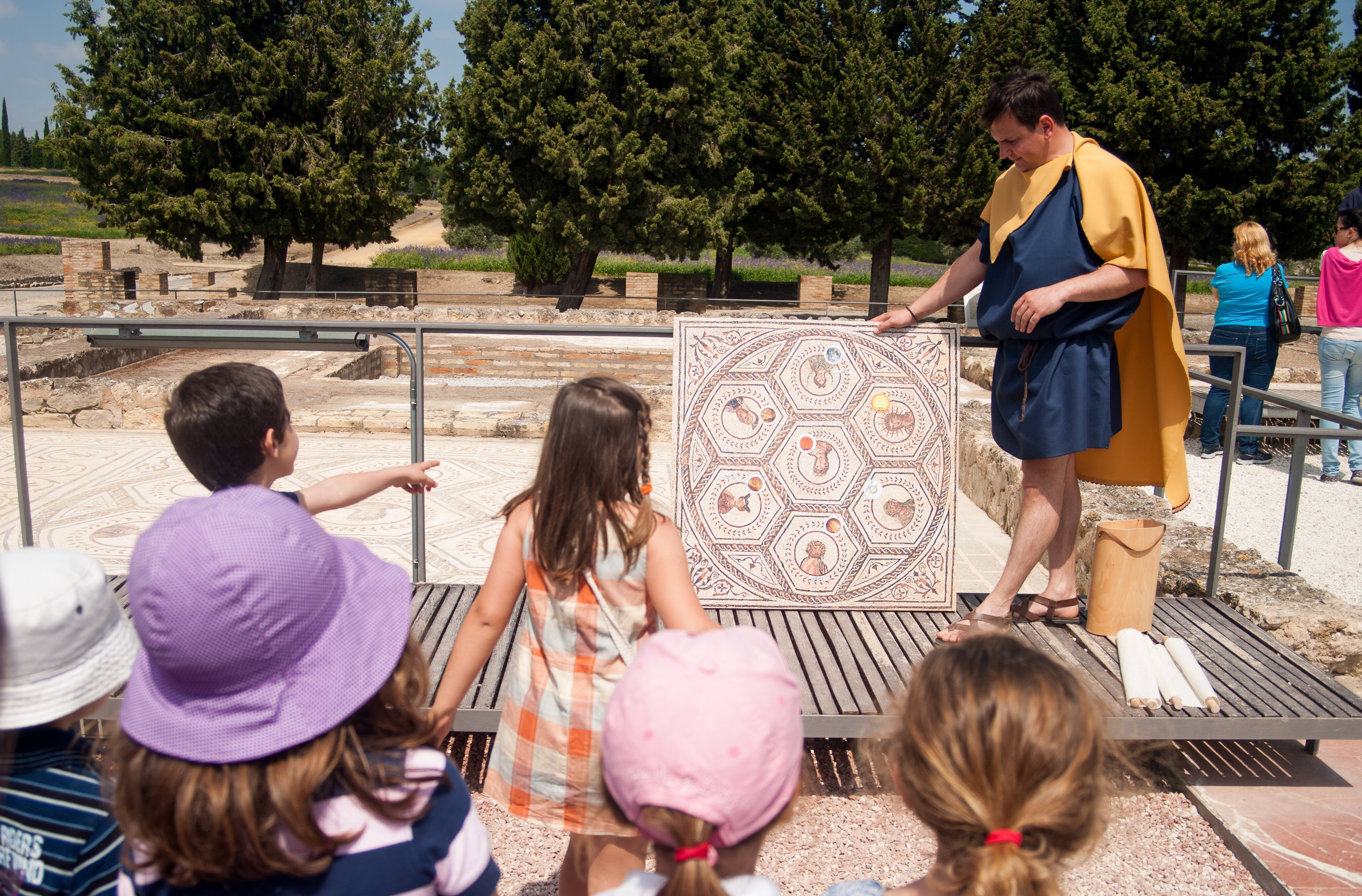 Por último, el conjunto arqueológico de Itálica ha programado la actividad “Los Mosaicos de Itálica”, experiencia donde los visitantes podrán disfrutar de un viaje en el tiempo en el que diferentes personajes irán descubriendo los secretos de los mosaicos italicenses.