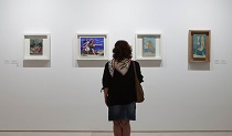 En la imagen, una mujer contempla las obras de Picasso en la pinacoteca malagueña
