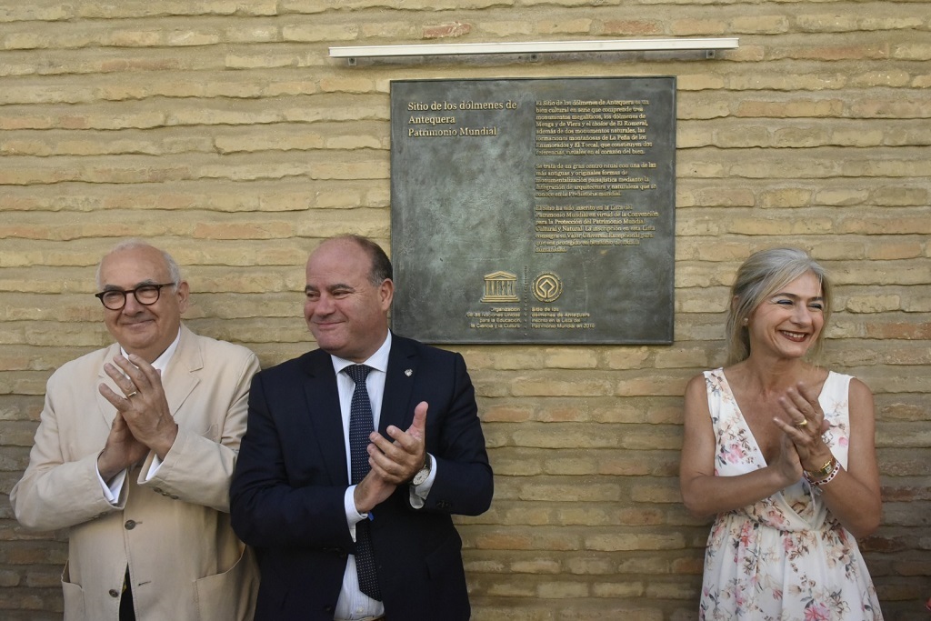 También se ha informado al Consejo de Coordinación del Sitio de los Dólmenes de Antequera de la próxima firma de un convenio entre la Consejería de Cultura y Patrimonio Histórico y la propiedad de la Peña de los Enamorados para autorizar el inicio de los estudios arqueológicos en este emplazamiento, una montaña natural hacia la que está orientada el dolmen de Menga. Finalmente, con motivo del tercer aniversario de la declaración de Patrimonio Mundial, Del Pozo ha inaugurado una placa conmemorativa del logro en el Ayuntamiento de Antequera y ha asistido al espectáculo ‘Música y luz para la cosmovisión del Sitio de los Dólmenes de Antequera’.