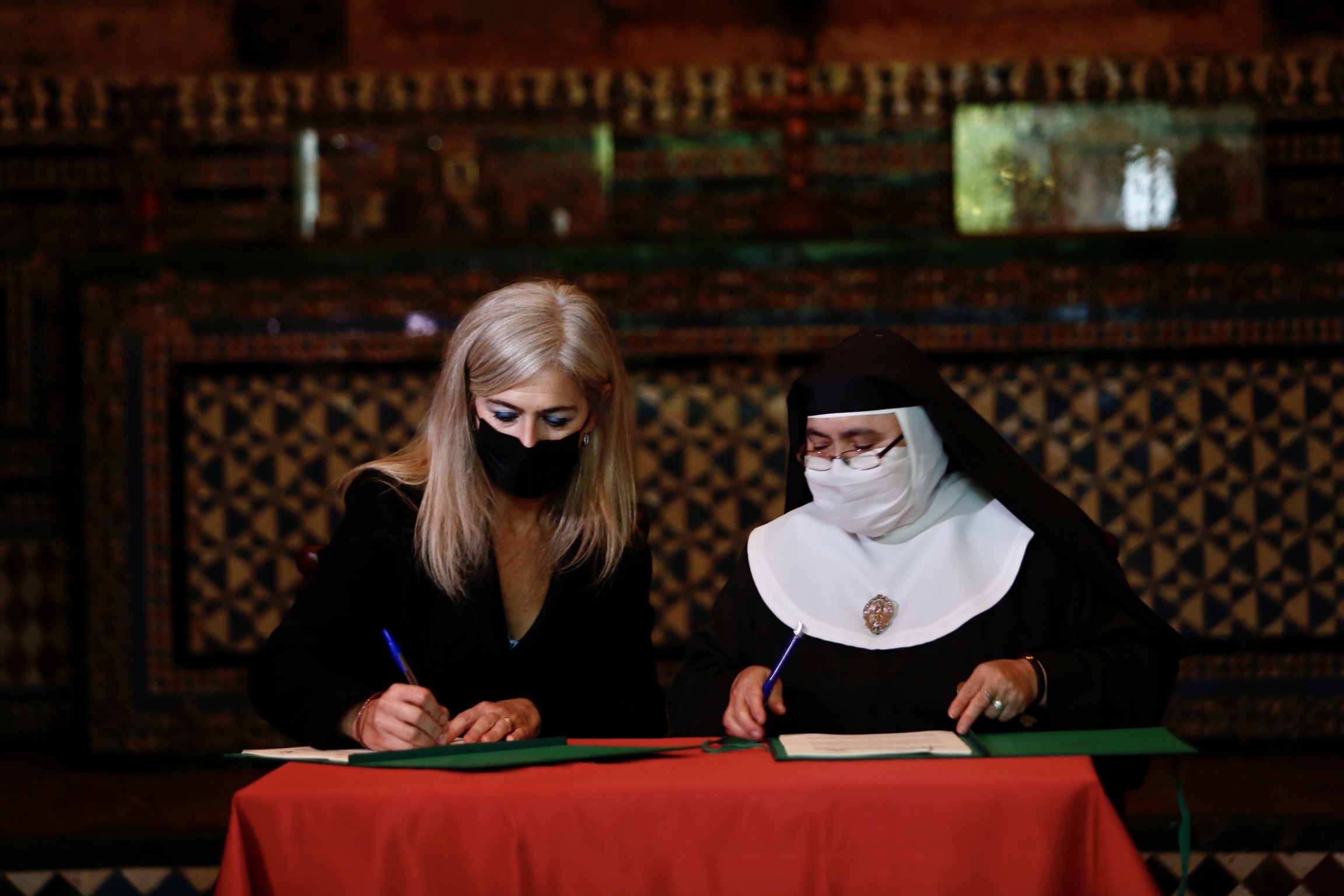 La consejera de Cultura y Patrimonio Histórico, Patricia del Pozo, y la madre abadesa del Convento de Santa Inés firman el acuerdo para la rehabilitación del Monasterio de Santa Inés