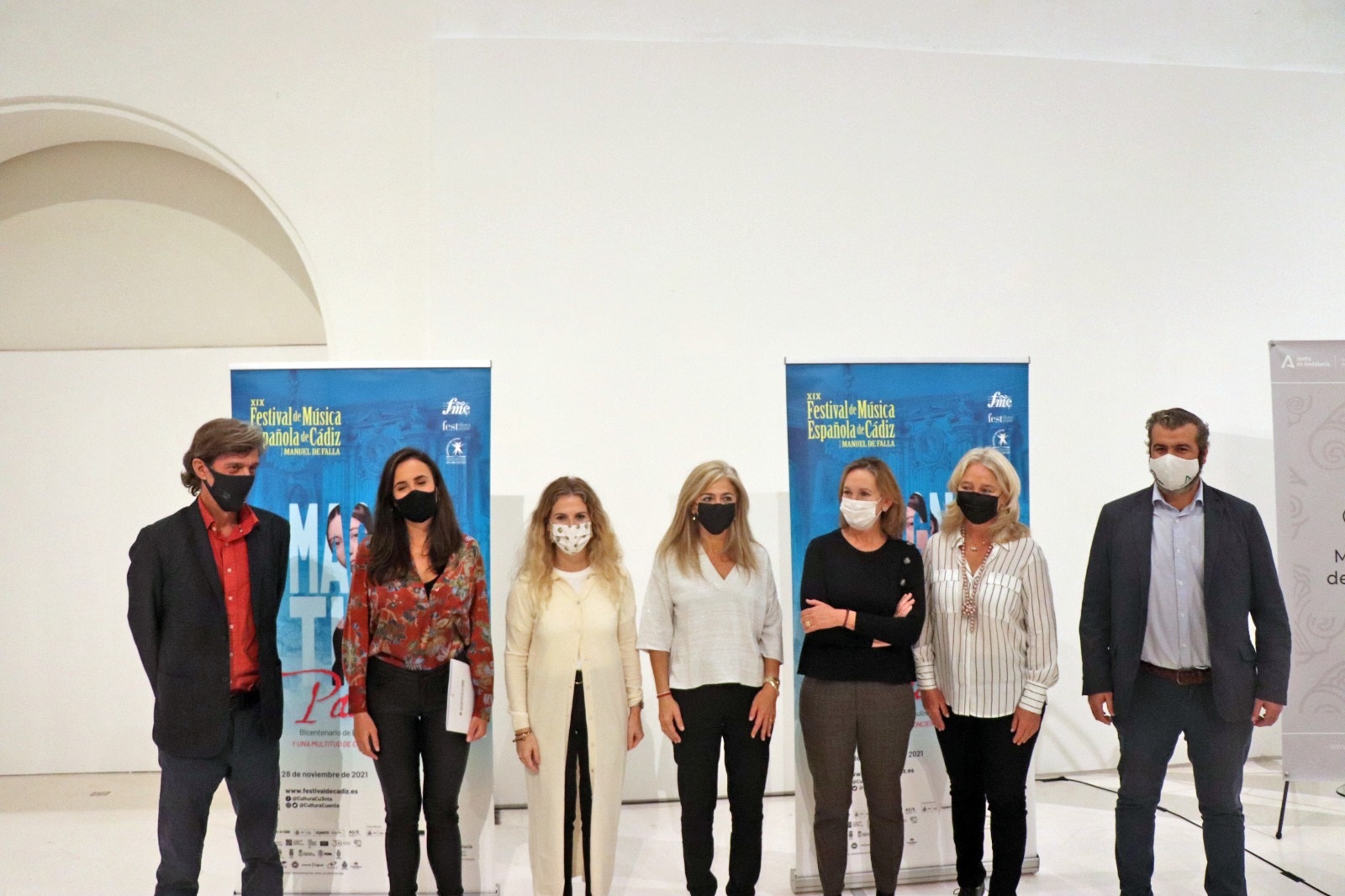 La consejera de Cultura y Patrimonio Histórico, Patricia del Pozo, ha presentado el XIX Festival de Música Española de Cádiz ‘Manuel de Falla’ dedicado a la cantante y compositora Pauline García Viardot y con “un aluvión de novedades y estrenos”. “En los más de 40 conciertos y actividades que se celebrarán en distintos municipios gaditanos entre el 12 y el 28 de noviembre, se estrenarán 20 obras y 14 producciones, entre ellas, una nueva versión de la obra póstuma de Falla, ‘La Atlántida’”, ha explicado Del Pozo, quien ha estado acompañada por la secretaria general de Innovación Cultural y Museos, Mar Sánchez Estrella; la delegada del Gobierno de la Junta en Cádiz, Ana Mestre; la delegada territorial de Cultura y Patrimonio Histórico, Mercedes Colombo, y el director del festival, Manuel Ferrand, junto a los patrocinadores y colaboradores del evento.