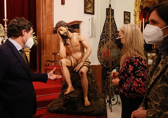 La consejera de Cultura y Patrimonio Histórico ha asistido esta mañana a la Capilla de los Marineros al acto de presentación de la restauración del Señor de la Humildad y Paciencia de la Hermandad Sacramental de la Esperanza de Triana, una talla vinculada a la corporación trianera al menos desde mediados del siglo XIX cuando aparece citada en un inventario realizado en la cofradía.