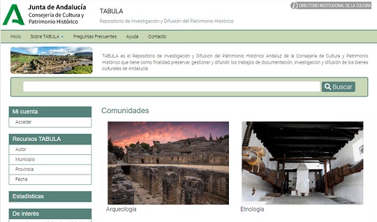 La plataforma ‘Tabula’, el repositorio digital de investigación y difusión del patrimonio histórico de Andalucía, ofrece acceso público a la información técnica y científica de la Consejería de Cultura y Patrimonio Histórico, entre los que destacan los resúmenes de las memorias de las actividades arqueológicas, los proyectos de investigación arqueológica, los recursos didácticos elaborados por los gabinetes pedagógicos de las delegaciones territoriales y un buen número de las publicaciones editadas por la Junta de Andalucía.
