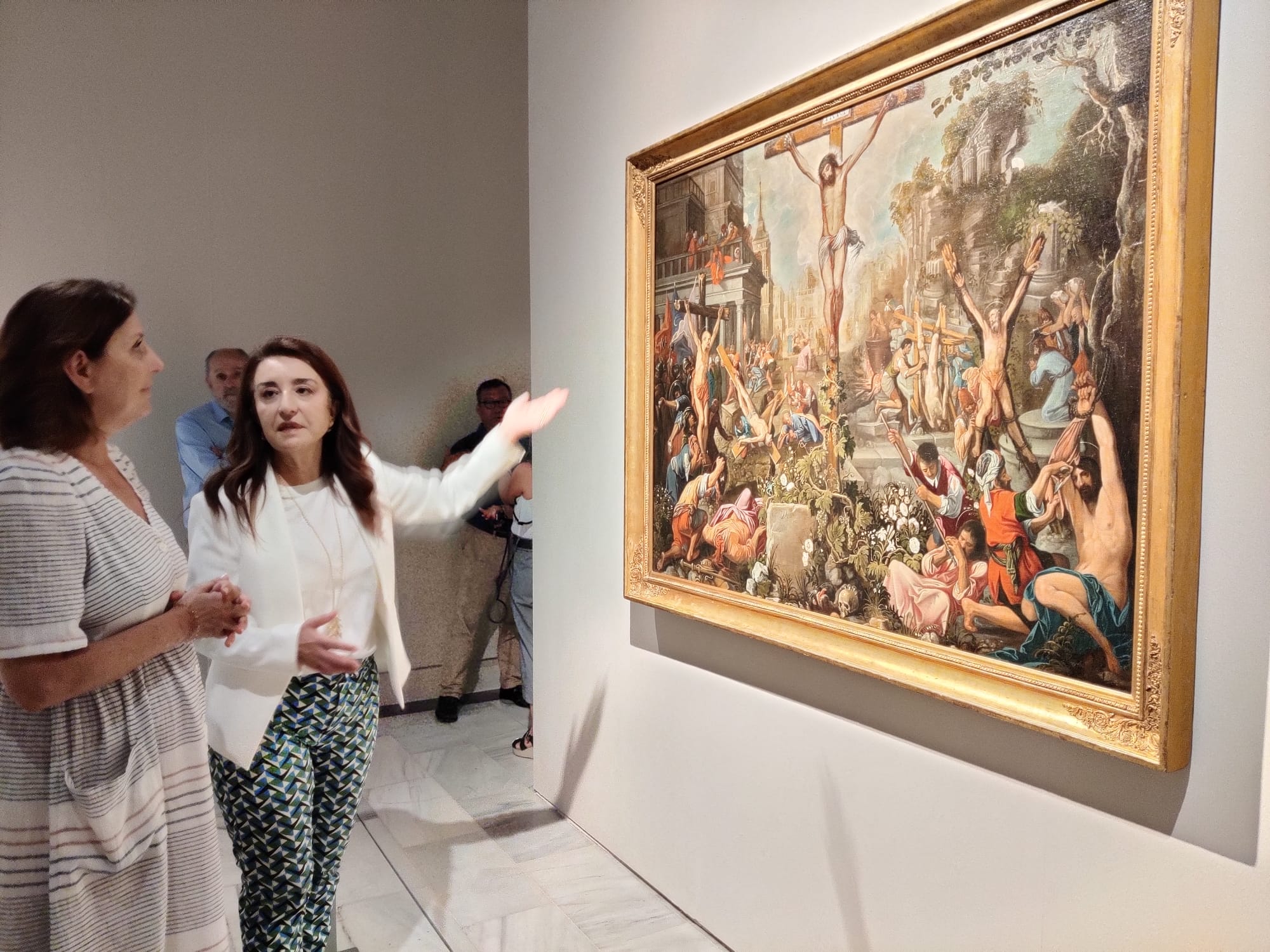 Dentro de las obras de ‘Del martirio a la santidad’ –abierta hoy al público, con la asistencia de la directora general de Innovación Cultural y Museos, Pía Halcón, y la directora del Museo, Valme Muñoz– destaca el óleo de Juan de Roelas ‘Cristo ejemplo de mártires’. El lienzo, un préstamo del Museo Nacional del Prado, formó parte de una de las series que colgaron de las paredes del antiguo convento de la Merced, actual sede de la pinacoteca sevillana. De ella formarían parte otras dos obras, el ‘Martirio de San Serapio’, presente en la muestra, y el ‘Martirio de San Pedro Pascual’, depositado en la iglesia de San Pedro.