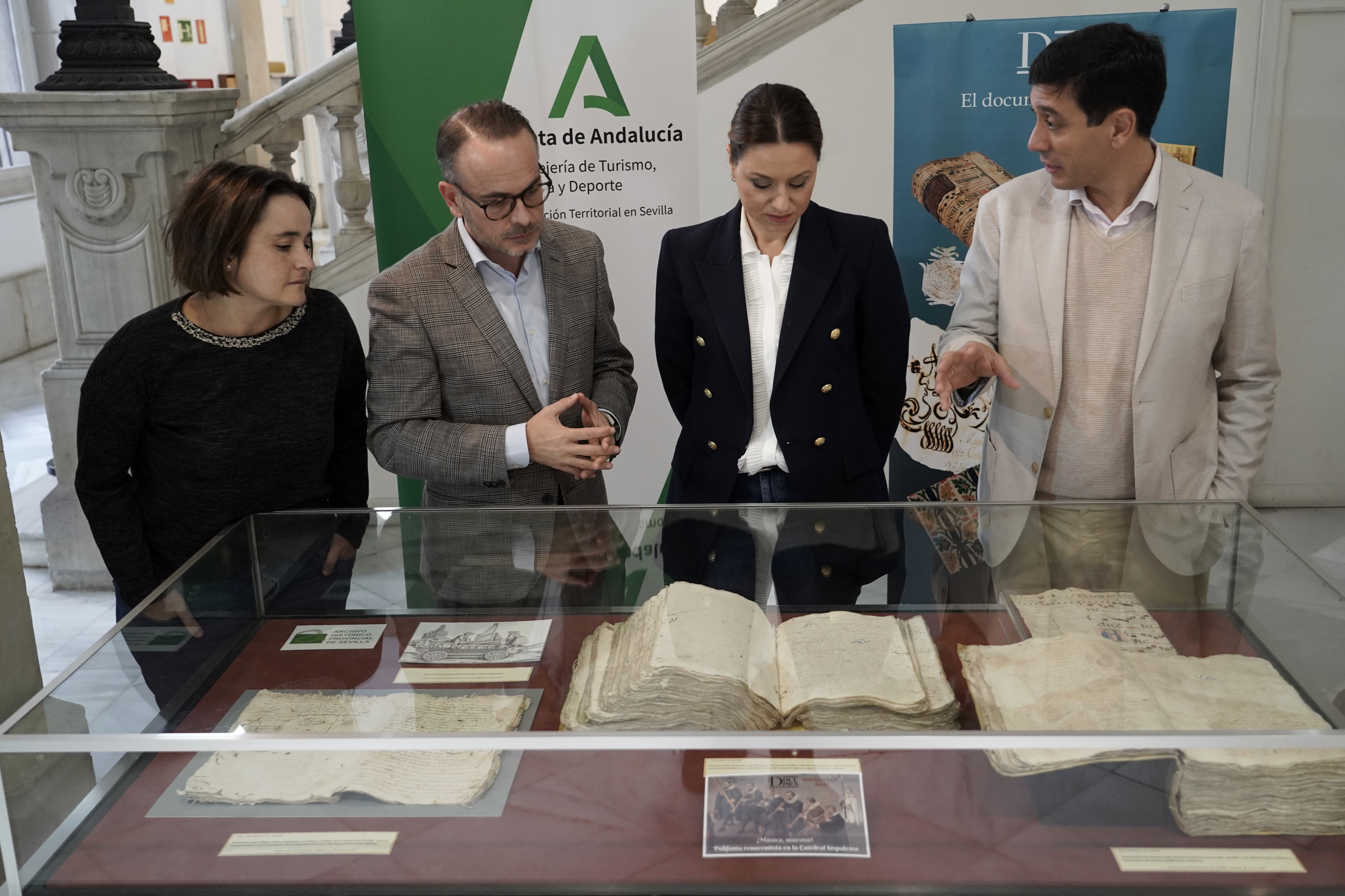 A la presentación de la actividad han asistido el director general de Patrimonio Documental y Bibliográfico, Juan Cristóbal Jurado, la delegada territorial de Turismo, Cultura y Deporte, Minerva Salas y el director del Archivo Histórico Provincial de Sevilla, Braulio Vázquez, que han ofrecido detalles de esta selección de documentos.
