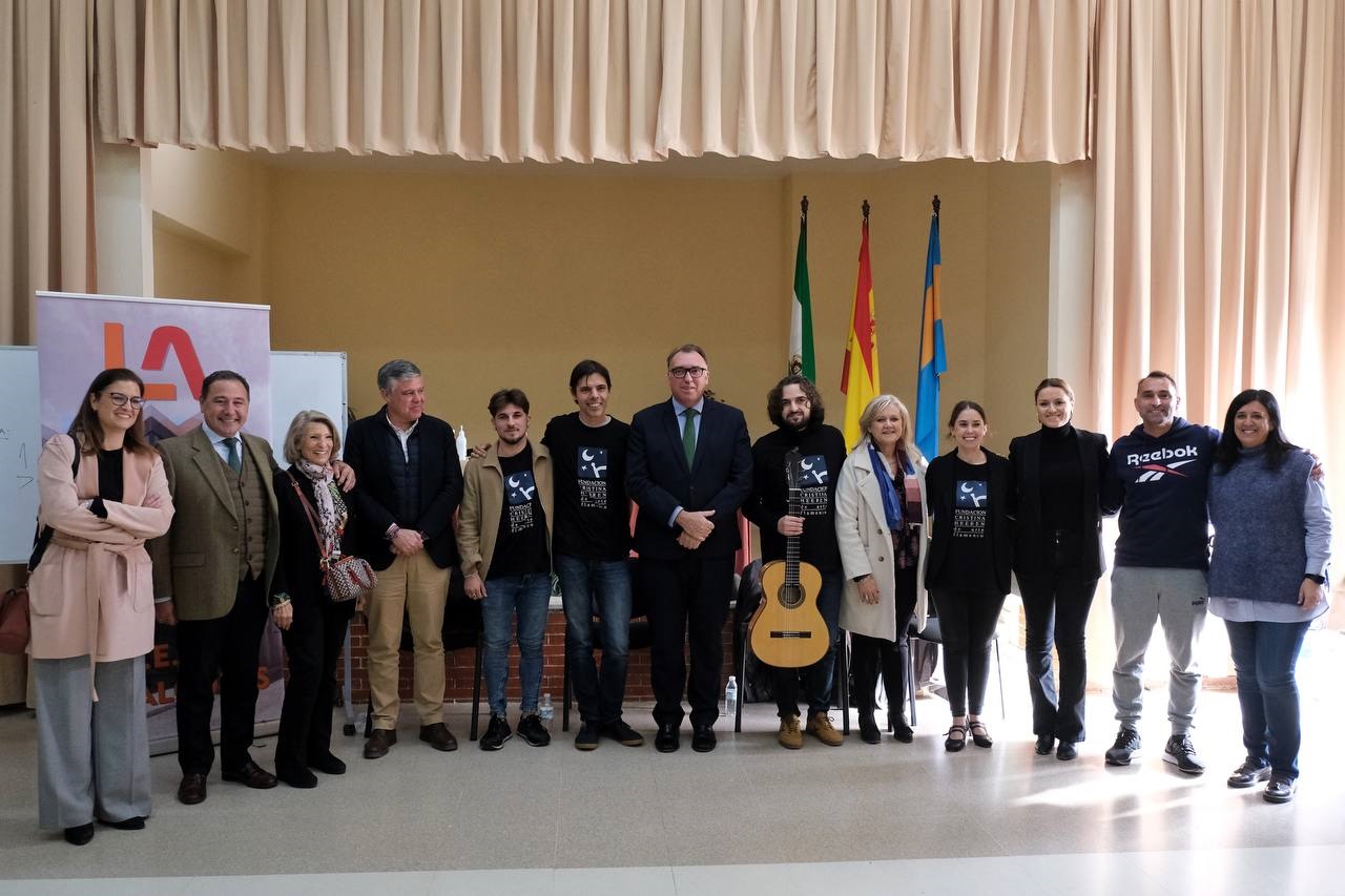 Bernal, que ha estado acompañado del delegado del Gobierno en Sevilla, Ricardo Sánchez; la delegada territorial de Turismo, Cultura y Deporte en Sevilla, Minerva Salas; el alcalde de Mairena del Alcor, Juan Manuel López; la concejala de Cultura, Gloria Guillén; y la directora del centro, María de Gracia Carrión ha asistido a una de las siete clases prácticas –concretamente a una lección de tangos flamencos- que la Fundación Cristina Heeren imparte a alumnos de 3º de la ESO del IES Los Alcores dentro de la asignatura optativa ‘Vivir y sentir el patrimonio flamenco’, que consta de dos horas semanales lectivas. Una iniciativa que forma parte del proyecto interdisciplinar del municipio mairenero para dar a conocer el arte jondo al alumnado.
