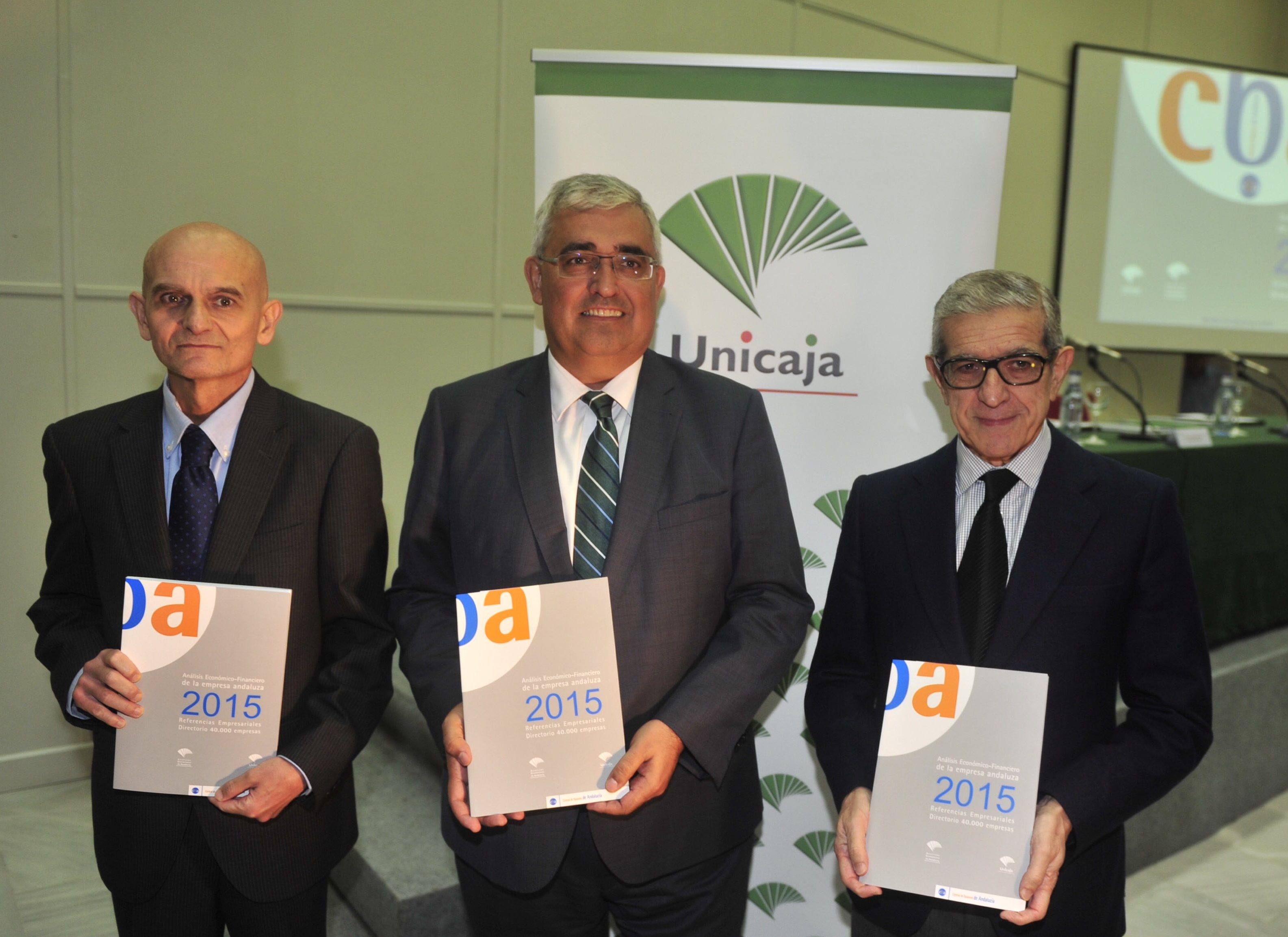El consejero de Economía, en el centro, en la presentación del informe de Unicaja.