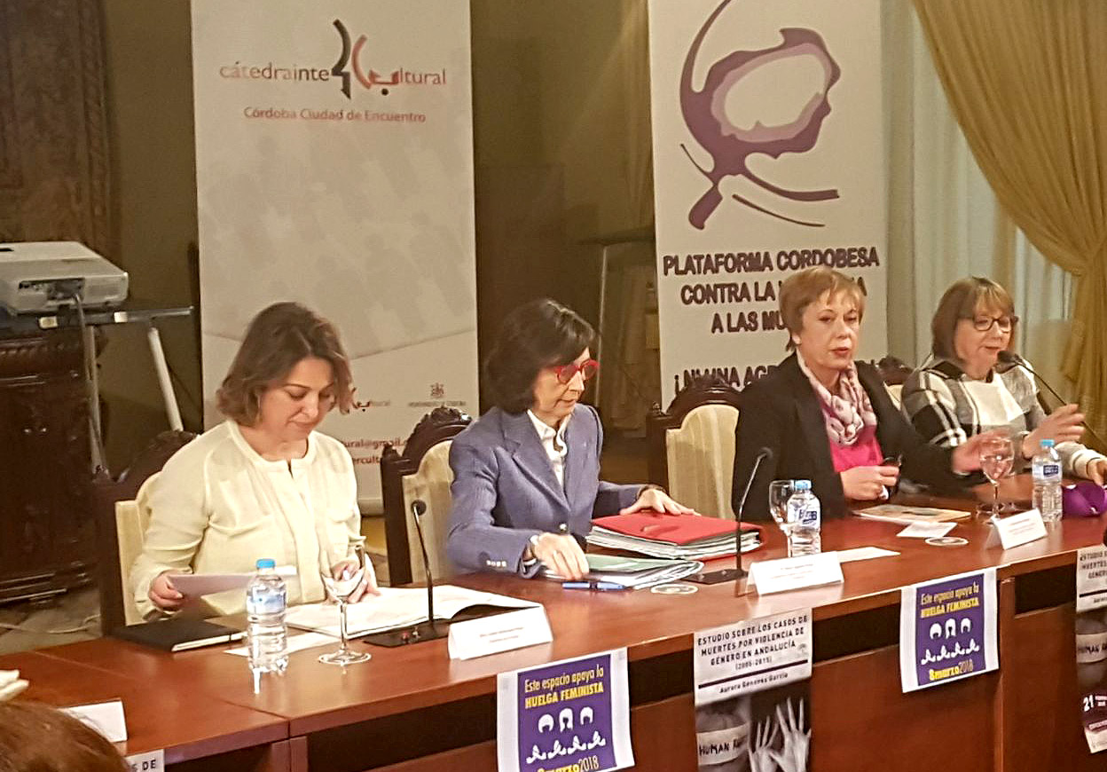 La consejera de Justicia e Interior, Rosa Aguilar, ha asistido hoy a la presentación del estudio sobre Casos de Muerte por Violencia de Género en Andalucía, obra de la abogada Aurora Genovés y su equipo por encargo de la Consejería, en un encuentro organizado por la Plataforma Cordobesa contra la Violencia a las Mujeres y la Cátedra Intercultural de la Universidad de Córdoba. Rosa Aguilar ha destacado la investigación en esta materia “como herramienta esencial para luchar contra la violencia de género porque genera un conocimiento que nos permite contar con más instrumentos para prevenirla y combatirla”.