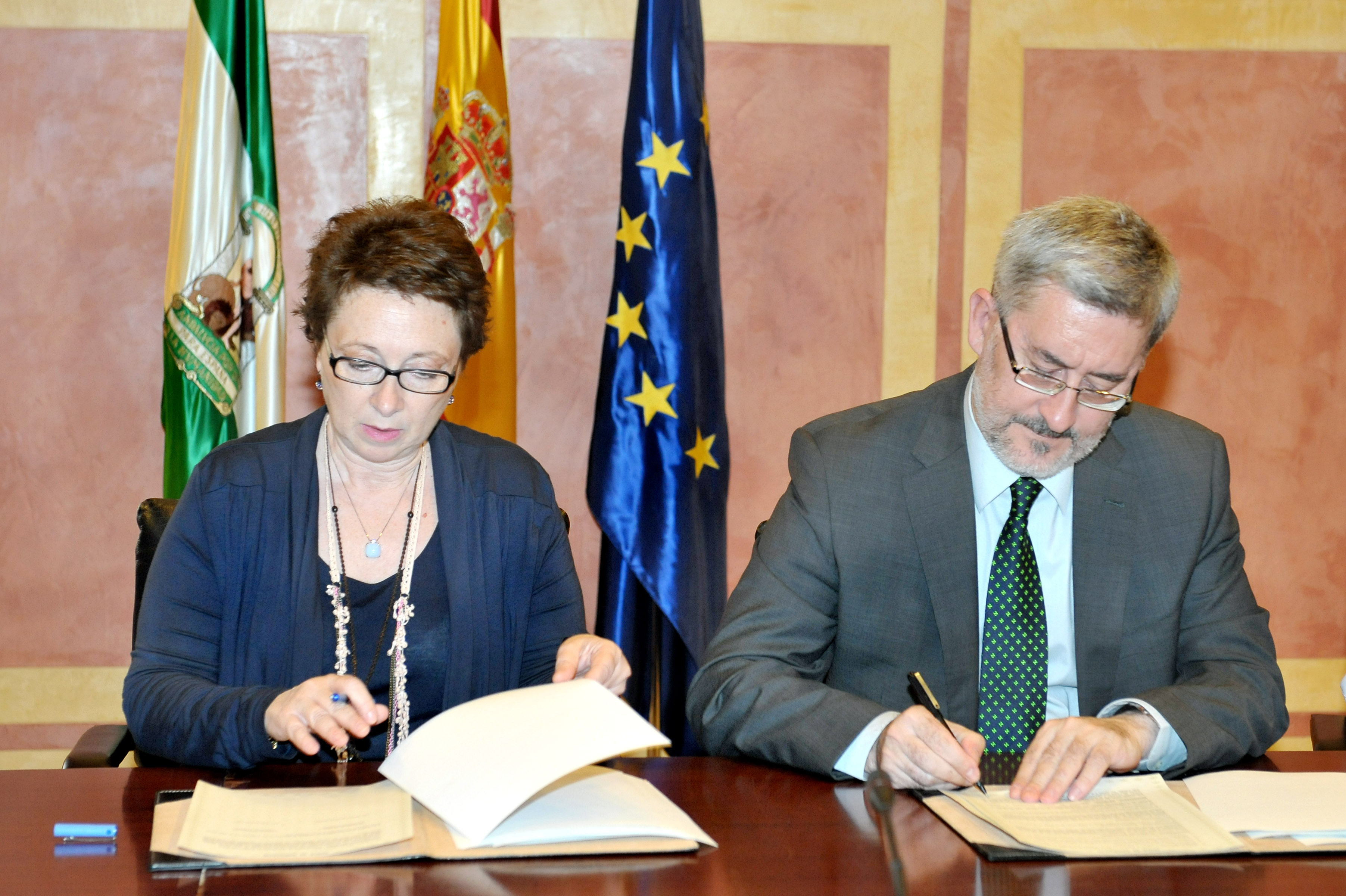 La consejera de Hacienda y Administración Pública, Carmen Martínez-Aguayo, y el consejero de Economía, Innovación y Ciencia, Antonio Ávila, han firmado el convenio de colaboración por el que se pone en marcha el Fondo para la Reestructuración Financiera de las Empresas, que dota de 70 millones de euros la convocatoria de la Orden de Empresas Viables con Dificultades Coyunturales, que modifica a la Orden de 5 de noviembre de 2008. La nueva convocatoria se encuentra enmarcada en el Acuerdo de Concertación Social con el objetivo de continuar dando respuesta al tejido productivo andaluz ante los problemas de tesorería que está provocando la actual rigidez de los mercados financieros.