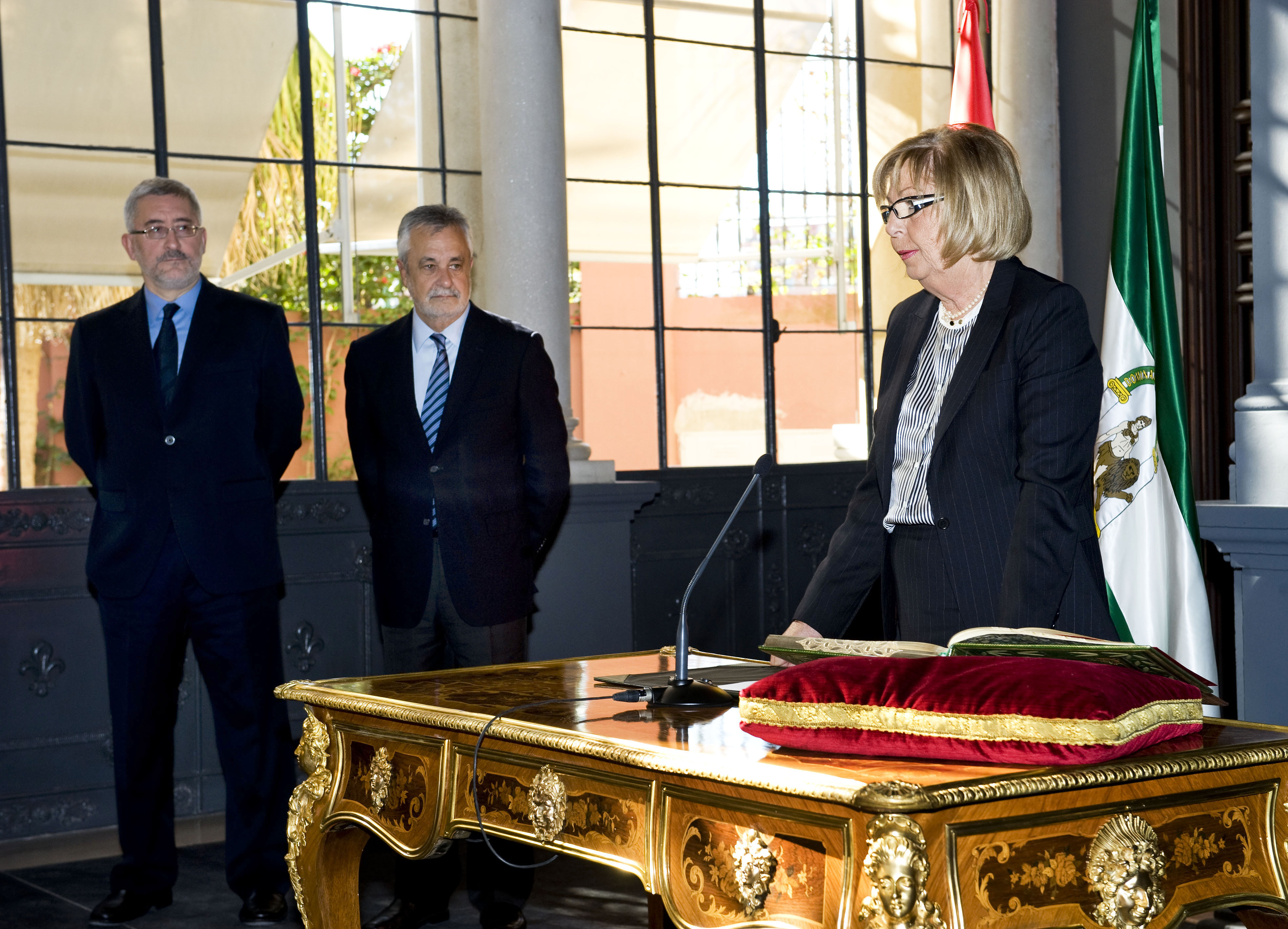 José Antonio Griñán y Antonio Ávila en la toma de posesión de Adelaida de la Calle.