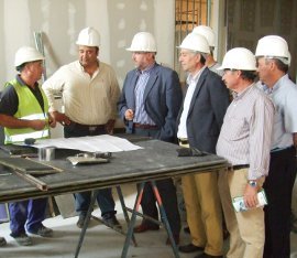 El delegado provincial de Economía, Innovación y Ciencia de la Junta de Andalucía, Manuel Gabriel Pérez; el concejal del Ayuntamiento de Martos, Francisco Delgado y el presidente de Andaltec, Francisco Buenaño, han visitado hoy las obras de adecuación del edificio 2 de la nueva sede de Andaltec, en las que se trabaja desde hace varios meses. Según las previsiones, los trabajos, que cuentan con un presupuesto de 1,3 millones de euros, estarán terminados para finales de 2012 y se espera que puedan permitir la generación de una decena de puestos de trabajo de alta cualificación una vez que esté en funcionamiento.