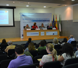 Una de las herramientas que ha llamado la atención de la mayoría de asistentes ha sido la presentación del Software de Información y Publicidad (SIP), planteada para facilitar el diseño final de las placas y vallas reglamentarias. Junto a los manuales de ayuda para FEDER, FSE, Fondo de Cohesión y FEADER, constituye el instrumento esencial para asegurar una correcta comunicación. A ambas aplicaciones se pueden acceder a través del siguiente enlace http://www.juntadeandalucia.es/economiainnovacionyciencia/fondoseuropeosenandalucia/asistencia_beneficiarios.php.