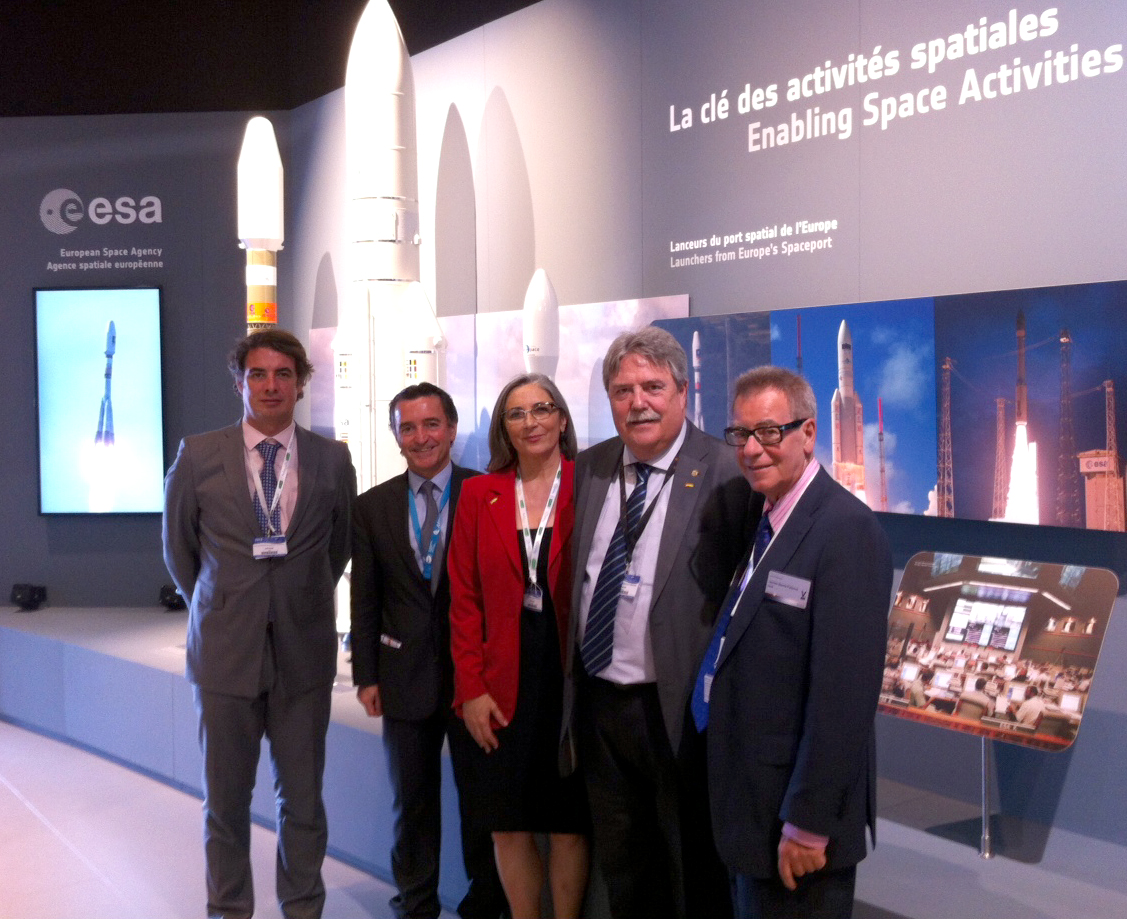 De (izquierda a derecha) El secretario general de Innovación, Industria y Energía, Vicente Fernández, Fernando Doblas, Teresa Sáez, directora general de Extenda, Juan Pedro Vela, presidente de Hélice, y Jacinto García responsable Relaciones Institucionales EADS España.