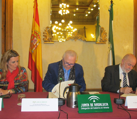 La delegada del Gobierno en Almería, el consejero de Economía y el rector de la Universidad de Almería, Pedro R. Molina García.
