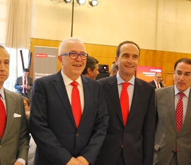 El consejero de Economía, José Sánchez Maldonado, en el acto del Banco Santander
