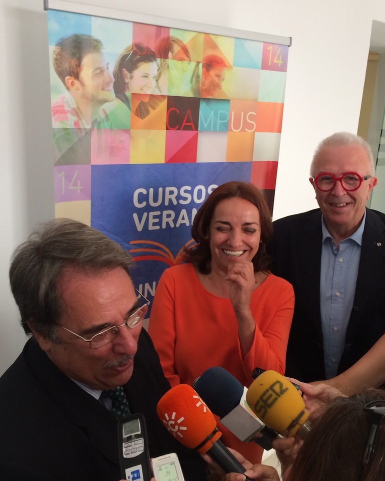 El consejero de Economía junto a Pepa Bueno y el rector de la UNIA