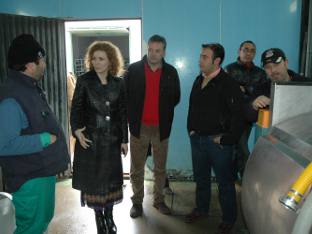 Asimismo, la delegada provincial de Economía y el alcalde, acompañado por miembros de la Corporación municipal, visitaron la empresa Quesos El Viar, una sociedad promovida por cuatro ganaderos jóvenes. Actualmente tienen en marcha la ampliación de su fábrica a una nave de gran dimensión en el mismo Polígono Industrial, que les permitirá abordar nuevos productos, ecológicos por ejemplo, abrirse a mercados nuevos, tanto nacionales como internacionales y dar el salto de calidad que necesitan.