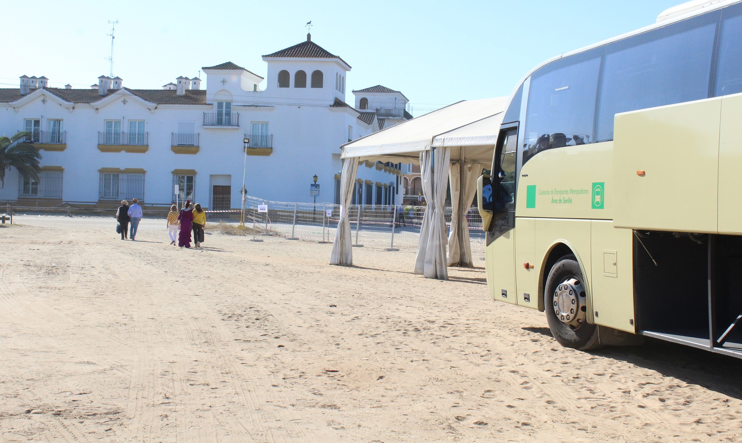 El Consorcio de Transporte Metropolitano de la Costa de Huelva también habilita un apeadero provisional en El Rocío con una extensión de 4.000 metros cuadrados distribuidas en dos parcelas localizadas a ambos lados de la jefatura de la Policía Local. Este apeadero dispone de módulos de aseos, servicios de limpieza y carpas entoldadas. Con este espacio se consigue separar el tráfico, según el destino del viaje y, a la vez, se aumenta la seguridad tanto de usuarios como de vehículos, al permitir suprimir las antiguas paradas en los márgenes de la travesía de la A-483. Durante la romería solo se realizará parada en los apeaderos de Matalascañas y Almonte.