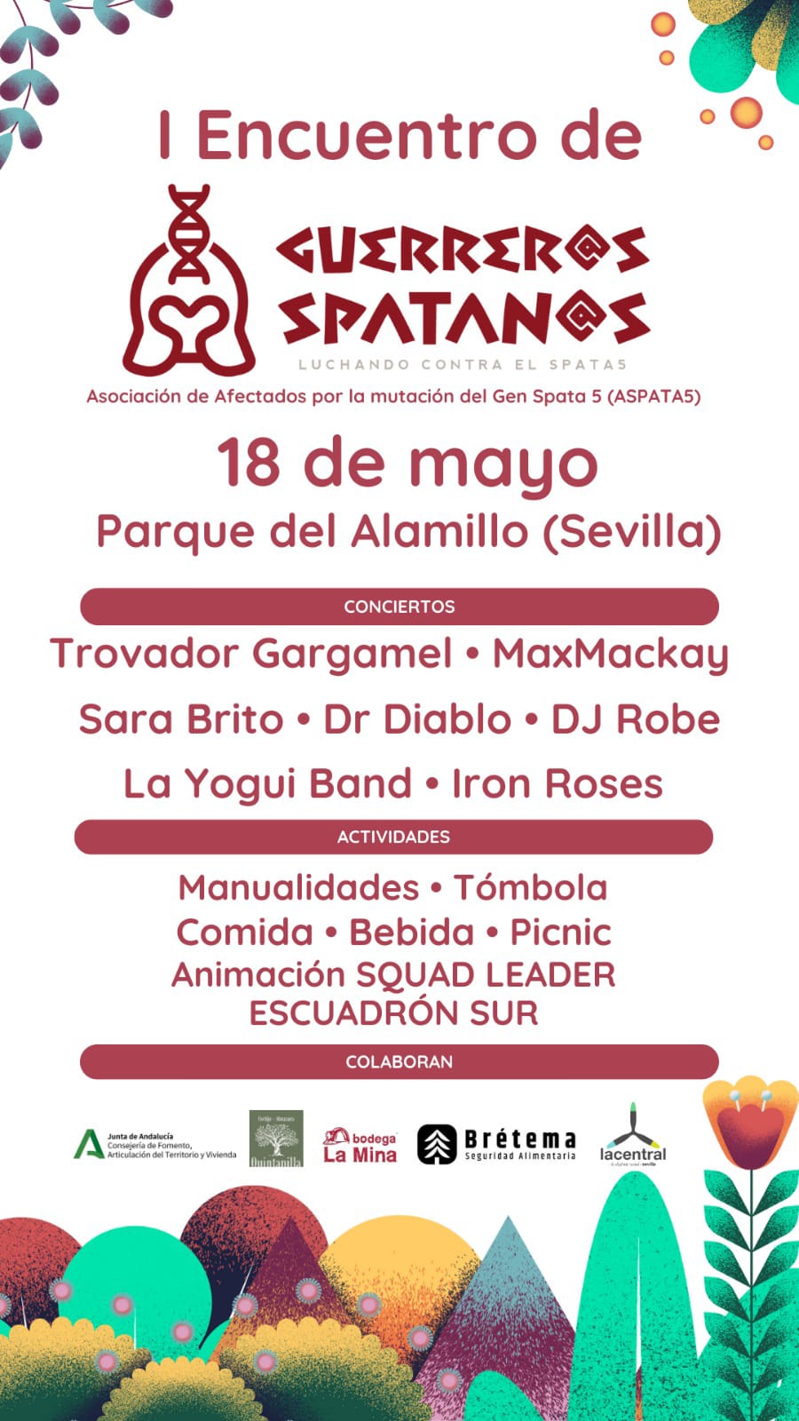La Asociación Aspata5, de afectados por la mutación del gen Spata5, ha organizado para el próximo sábado 18 de mayo en el Parque del Alamillo un evento cultural y de convivencia que tiene como objetivo dar visibilidad a esta enfermedad y recaudar fondos para apoyar proyectos de investigación que permitan desarrollar tratamientos que ayuden a mejorar la calidad de vida de los afectados.