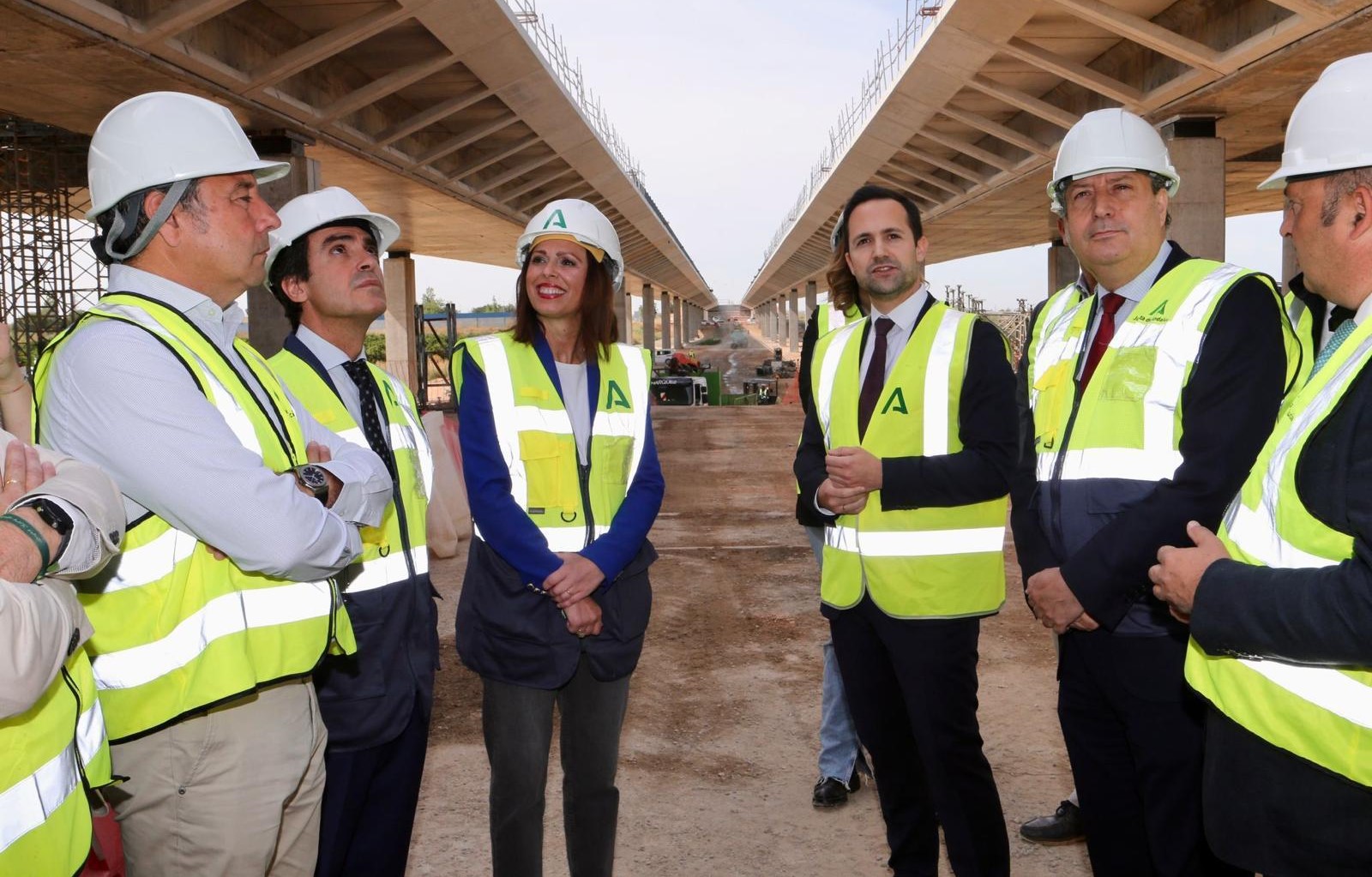 La consejera de Fomento, Articulación del Territorio y Vivienda, Rocío Díaz, ha realizado una visita técnica a las obras del viaducto de Pago de Enmedio, en el término municipal de La Rinconada, donde ha comprobado los trabajos del vial de acceso Norte a Sevilla, que ya se encuentran en un avanzado grado de ejecución de más del 80%, con la estructura ya completada y encarando ahora tareas finales de aglomerado, plantación, señalización y medidas de reducción del ruido con la colocación de pantallas acústicas.