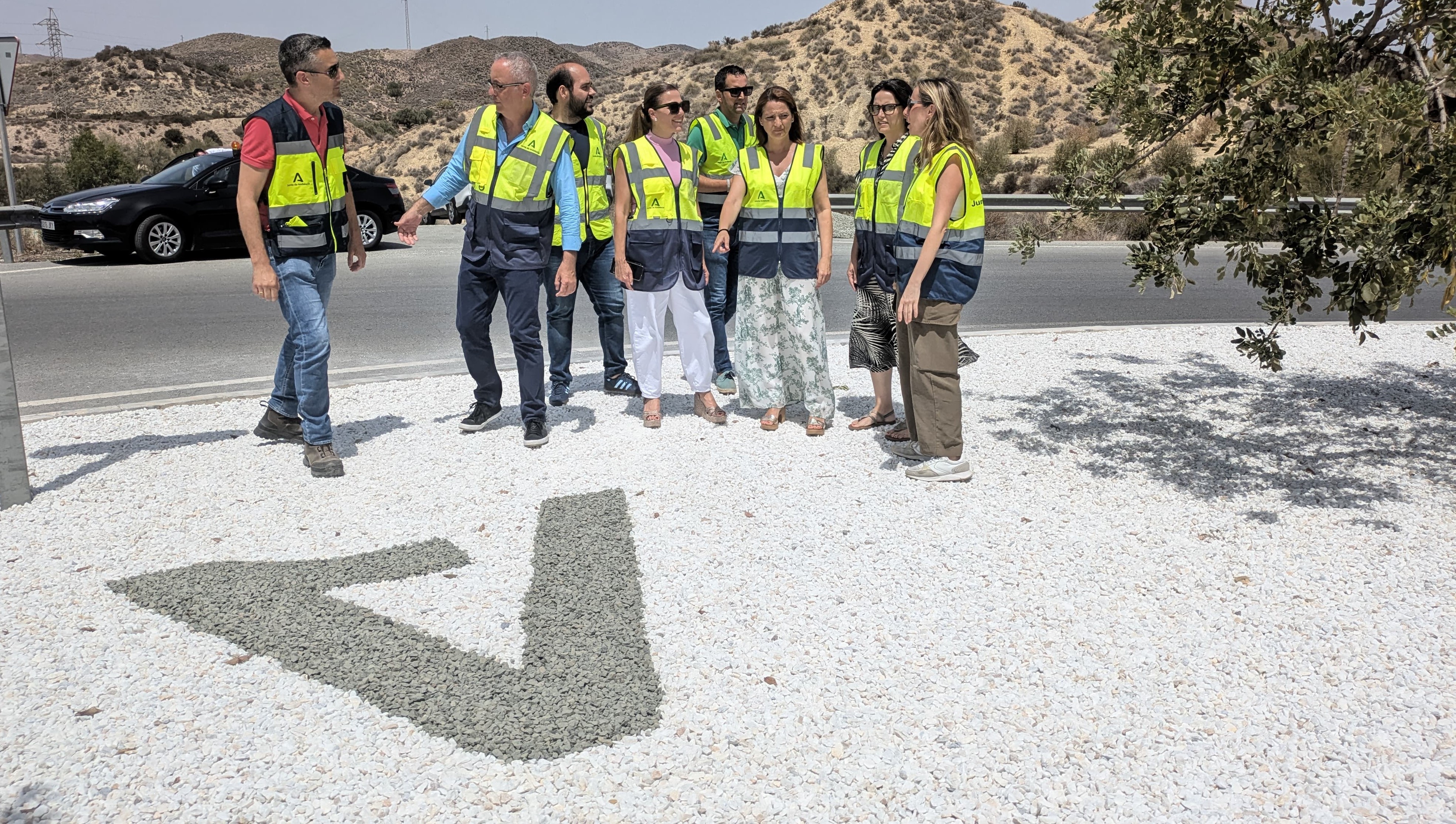 La delegada Territorial de Fomento, Articulación del Territorio y Vivienda en Almería, Dolores Martínez Utrera, acompañada por la alcaldesa de Albox, María del Mar Alfonso, han visitado las obras realizadas en la glorieta ubicada en el margen derecho del enlace 70 de la autovía A-334, en el término municipal de Albox. Se trata de unas obras de mejora que han consistido en la limpieza y embellecimiento de esta glorieta.
