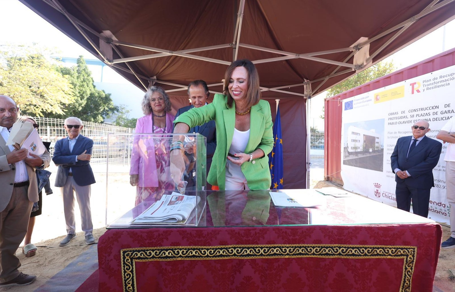La consejera ha estado acompañada en el acto de colocación de la primera piedra por una representación de la Junta conformada por el director general de Vivienda y Regeneración Urbana, Juan Cristóbal Jurado; la delegada territorial de Fomento en Cádiz, Carmen Sánchez; y la delegada territorial de Justicia, Administración Local y Función Pública, Ana Mª Bertón.