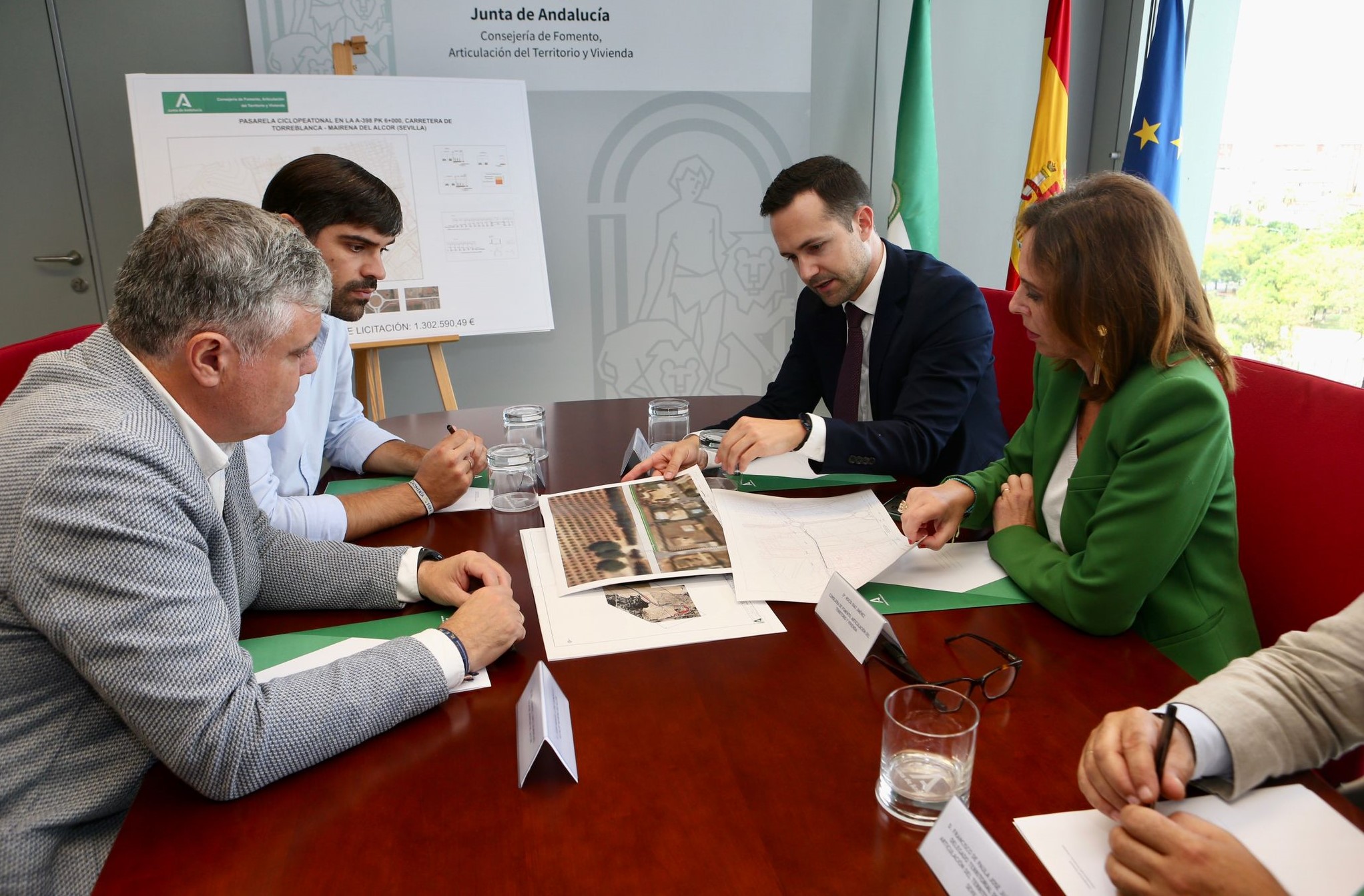 El proyecto, que presentó en una reunión en la que también estuvo presente el director general de Infraestructuras Viarias, Alfonso Lujano, y el delegado territorial de Fomento en Sevilla, Francisco de Paula Juárez, nace de un protocolo que firmaron el año pasado año la Consejería de Fomento, Articulación del Territorio y Vivienda y el Ayuntamiento de Mairena del Alcor para mejorar la conexión ciclopeatonal de las urbanizaciones el Campillo, el Rosal y los Claveles con el núcleo urbano, que estaban obligados a realizar el trayecto en automóvil ante la inexistencia de una vía peatonal.