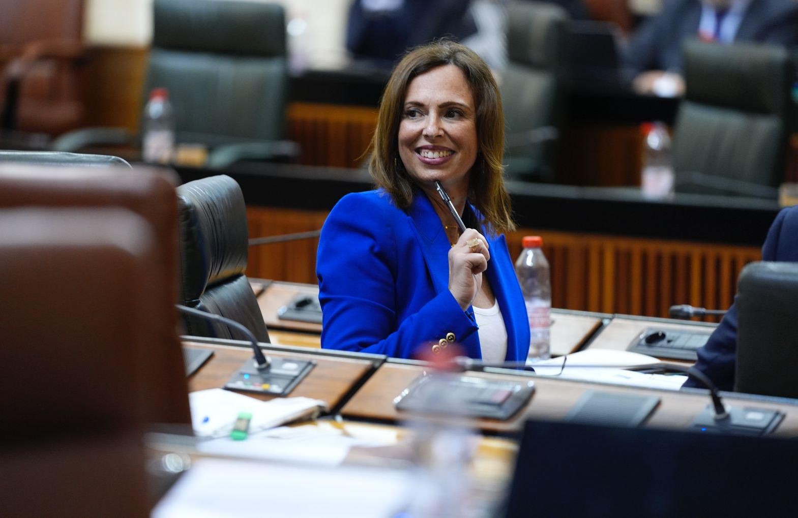 La consejera Rocío Díaz durante la sesión parlamentaria de esta mañana.