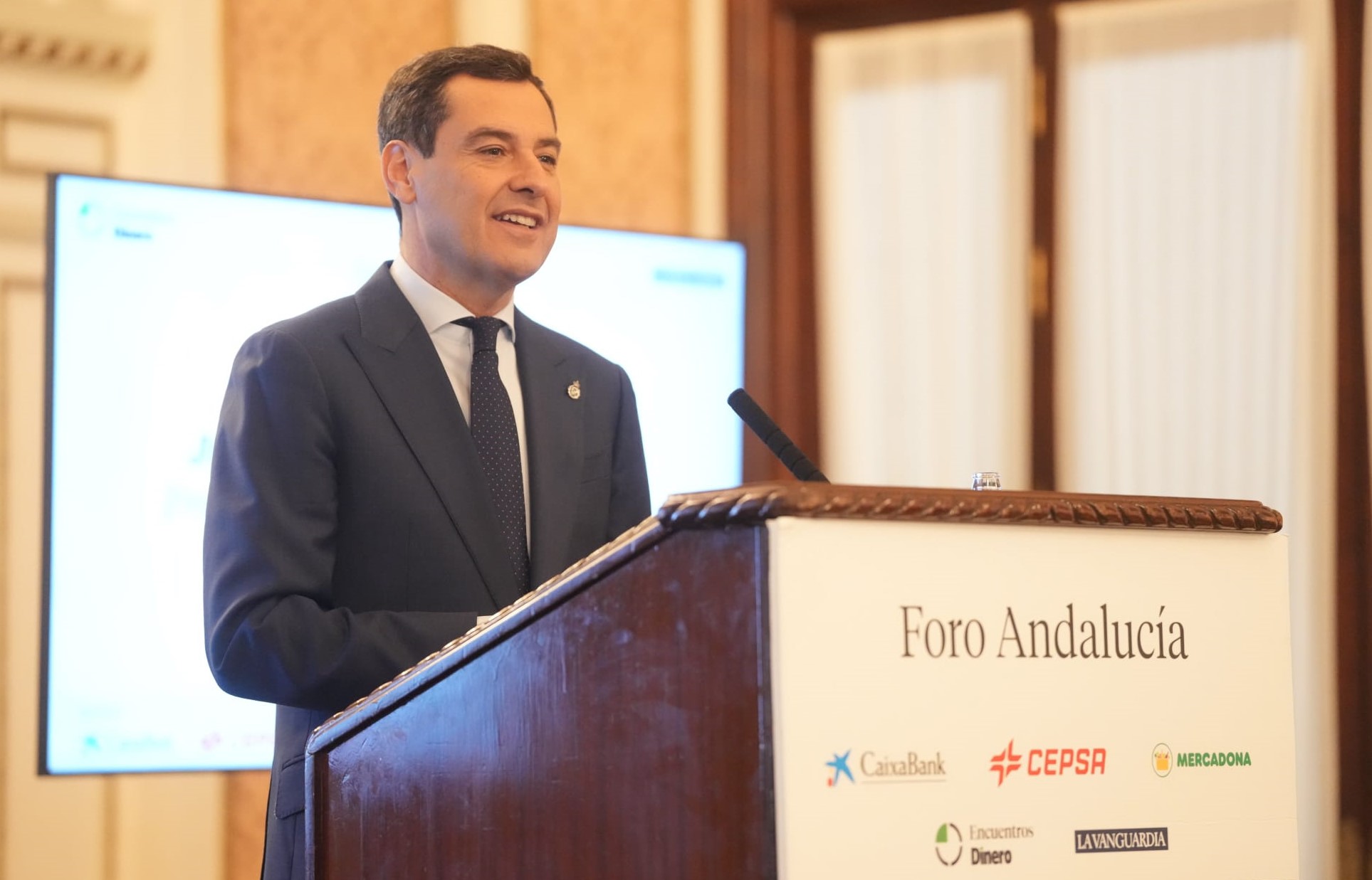 El presidente Juanma Moreno en su intervención esta mañana en el Foro Andalucía.