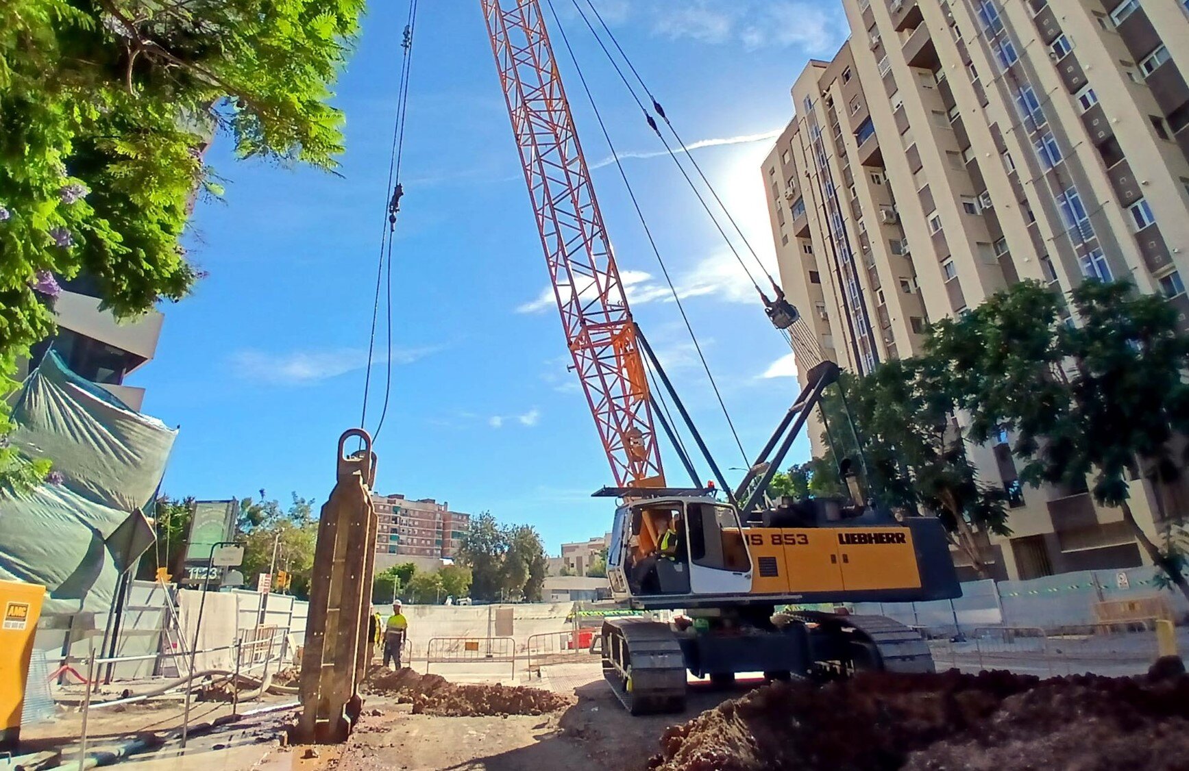Obras de ampliación del Metro de Málaga en la calle Hilera.