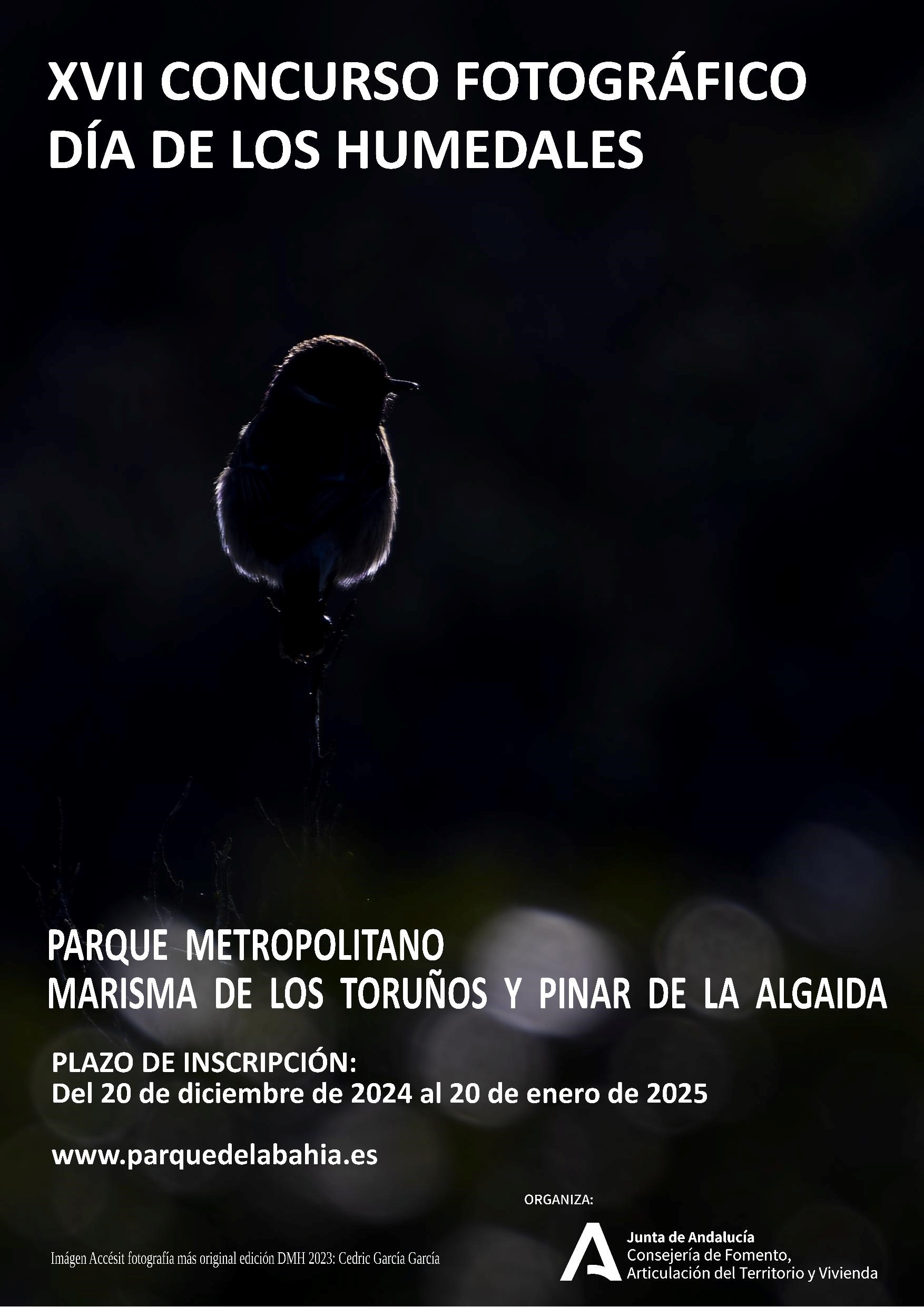 El Parque Metropolitano Marisma de los Toruños y Pinar de la Algaida, gestionado por la Consejería de Fomento, Articulación del Territorio y Vivienda, ha convocado el XVII Concurso Fotográfico organizado con motivo del Día Mundial de los Humedales, que se celebrará el 2 de febrero de 2025. El plazo de presentación de instantáneas comienza este viernes, día 20, y finalizará el próximo 20 de enero.