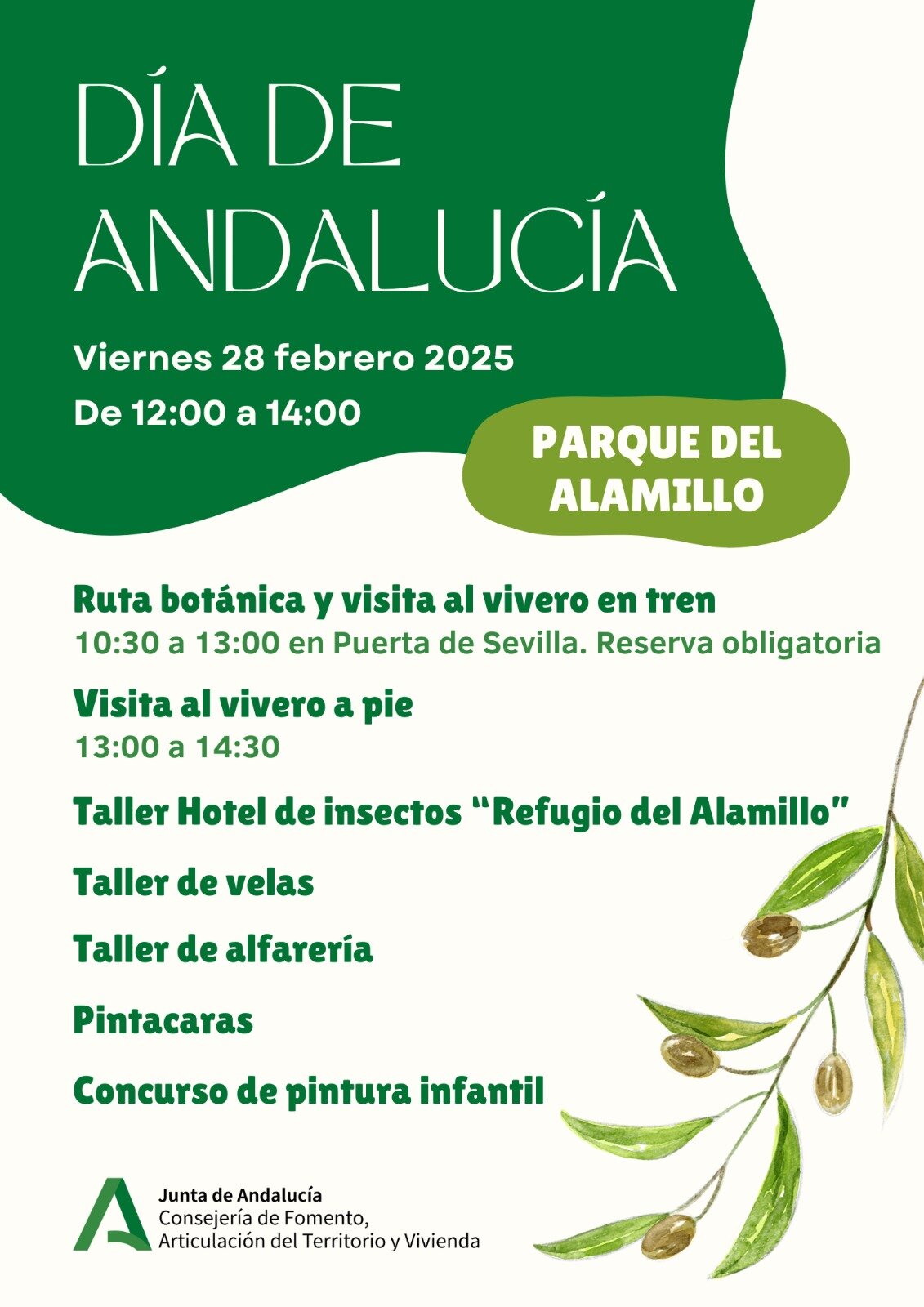 El Parque del Alamillo celebrará el Día de Andalucía con una extensa programación de actividades lúdico-recreativas para los usuarios y que en el que serán protagonista las muchas asociaciones que desarrollan su actividad con numerosas actividades lúdico-recreativas para los usuarios, entre las que cabe destacar talleres infantiles, concurso de dibujo y rutas, además de otras iniciativas que llenarán de ambiente festivo la mañana