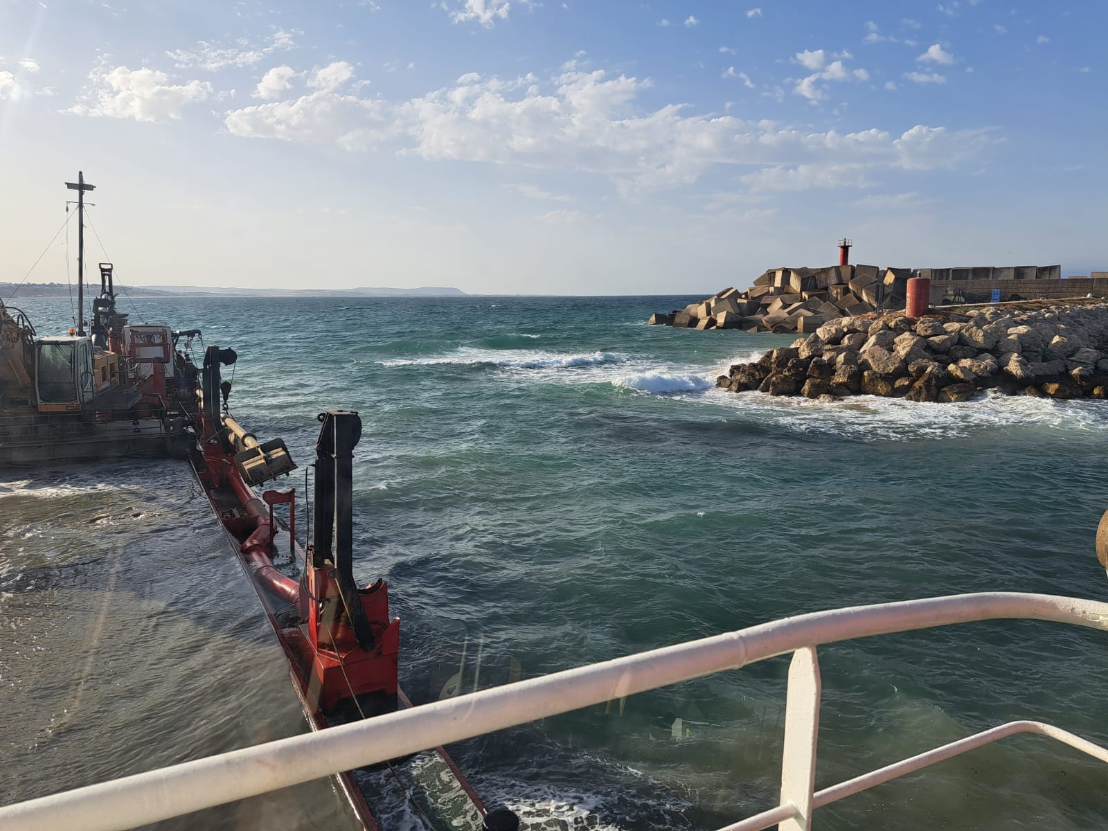 El dragado de emergencia en la bocana de acceso al puerto de Conil está ya al 58% de su ejecución