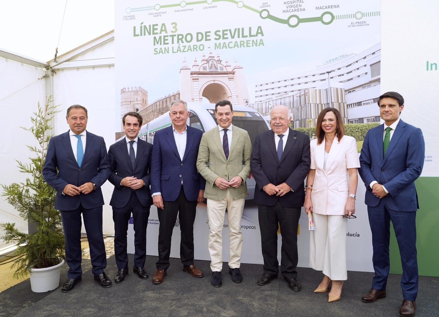 El presidente de la Junta de Andalucía, Juanma Moreno, ha asistido al acto de colocación de la primera piedra del tramo 3 de la línea 3 Norte del metro de Sevilla donde ha afirmado que estas obras avanzan con el objetivo de hacer de ésta una ciudad más cómoda, habitable y sostenible.