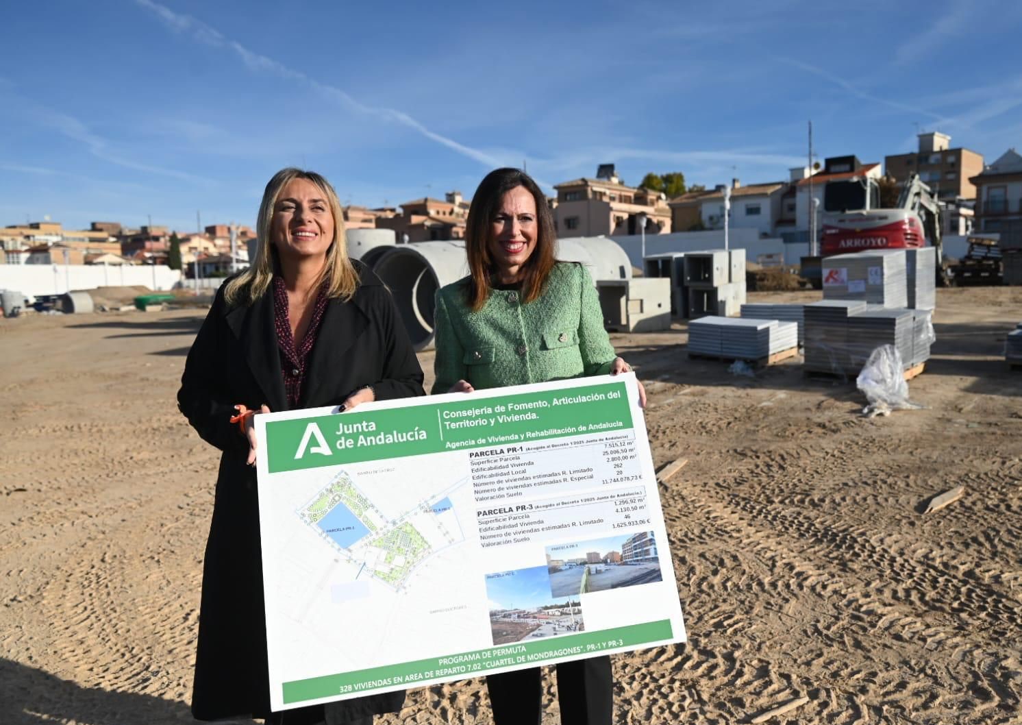 La Consejería de Fomento, Articulación del Territorio y Vivienda ha sacado a concurso dos parcelas de titularidad pública en Cuartel de Mondragones, en Granada capital, para promover la construcción de 328 viviendas protegidas. La consejera de Fomento, Rocío Díaz, ha hecho este anuncio durante su visita junto a la alcaldesa de Granada, Marifrán Carazo, a las obras de urbanización, que se encuentran en un estado avanzado de ejecución y finalizarán a principios de 2026. Las viviendas protegidas de Mondragones se han licitado a través del sistema de permuta de la Agencia de Vivienda y Rehabilitación de Andalucía (AVRA), por el que la Junta ofrece suelo público a un promotor a cambio de que construya viviendas protegidas.