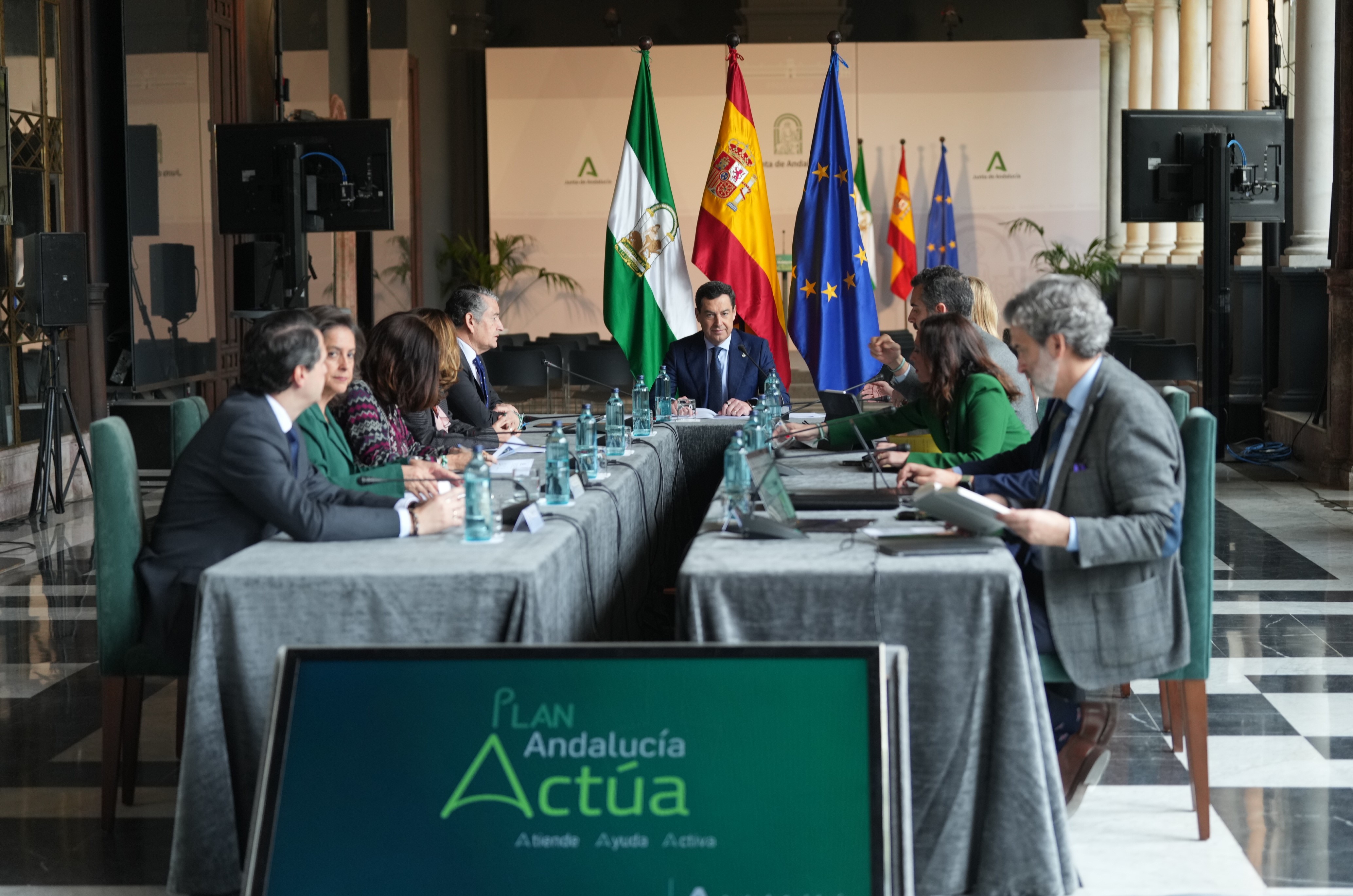 El presidente de la Junta, Juanma Moreno, aborda con el equipo de gobierno autonómico las línea de acción incluidas en el Plan Andalucía Actúa