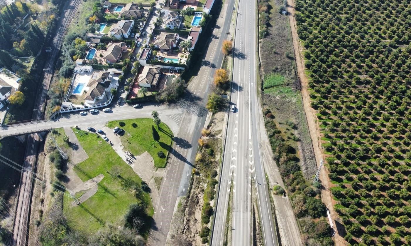 La pasarela peatonal se sitúa a la altura del kilómetro 51 de la carretera de Córdoba a Lora del Río (A-431), una vía que supone una importante barrera física para el tránsito de peatones y ciclistas, sobre todo de las urbanizaciones de El Acebuchal y El Baldío.