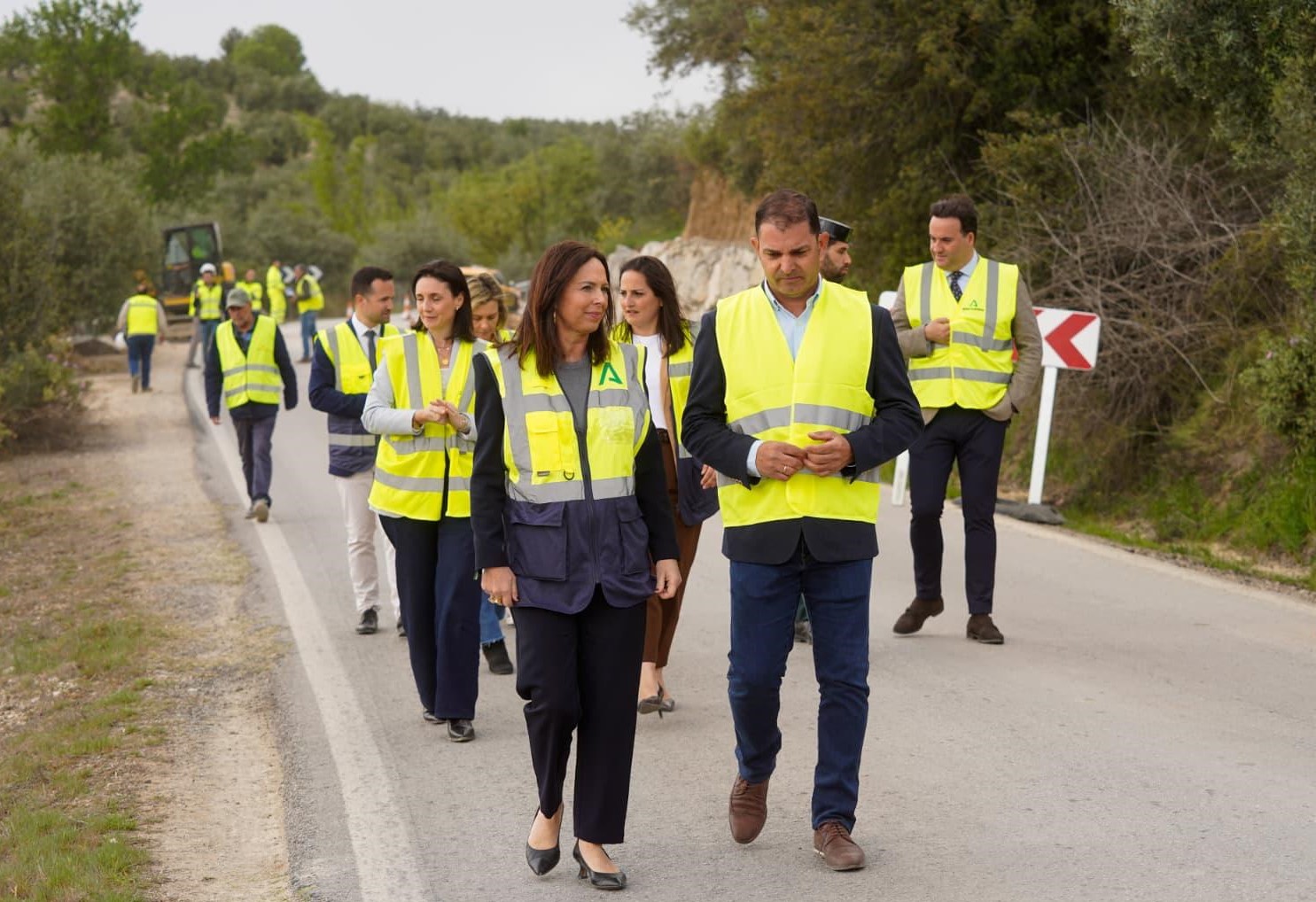 La consejera de Fomento, Articulación del Territorio y Vivienda, Rocío Díaz, ha visitado las obras de emergencia que se ejecutan en la carretera A-333, en Priego de Córdoba, con motivo de los daños ocasionados por el tren de borrascas. La consejera ha estado acompañada por los alcaldes de Priego de Córdoba, Juan Ramón Valdivia, y de Algarinejo, Jorge Sánchez Hidalgo, donde han analizado los trabajos que se están llevando a cabo en las carreteras afectadas a su paso por el municipio.