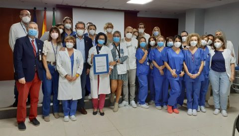 Durante el acto, la responsable de la unidad de Laboratorios, Monsalud Arrebola Ramírez, y la coordinadora de cuidados de la unidad, Mª Dolores Díaz Zayas, han recogido en representación de todo su equipo el certificado que acredita la finalización del proceso de certificación con la ACSA, culminado con la obtención del nivel ‘Avanzado’.