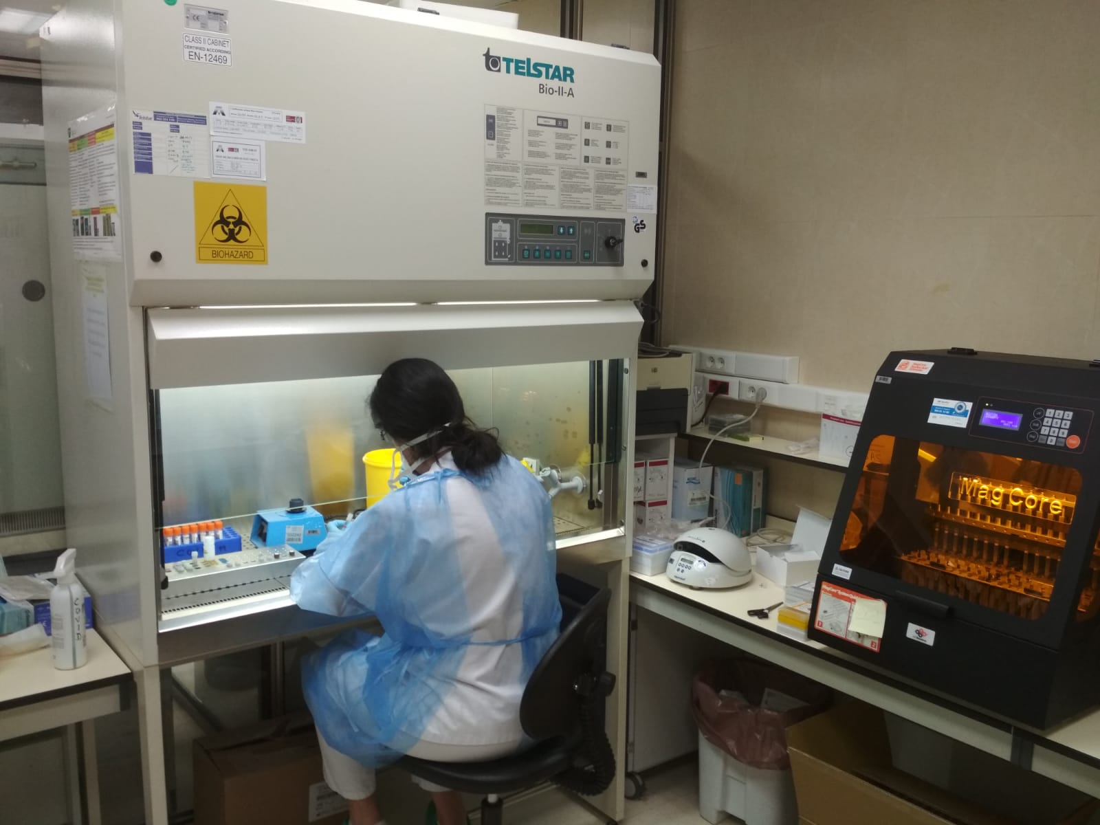 Para el diagnóstico de COVID-19 se realiza la extracción de ARN, como paso previo a la realización de la técnica PCR (Polymerase Chain Reaction, o lo que es lo mismo, reacción de la polimerasa en cadena). Es una técnica que se utiliza de manera habitual en los laboratorios clínicos y que está basada en la amplificación de fragmentos de ADN mediante ciclos consecutivos de incrementos y bajadas de temperatura. La gran dificultad que se ha encontrado para esta tarea ha sido la escasez de fungibles y reactivos de extracción de ARN a nivel mundial, de ahí la búsqueda de colaboración institucional, que ha tenido una respuesta positiva y desinteresada.